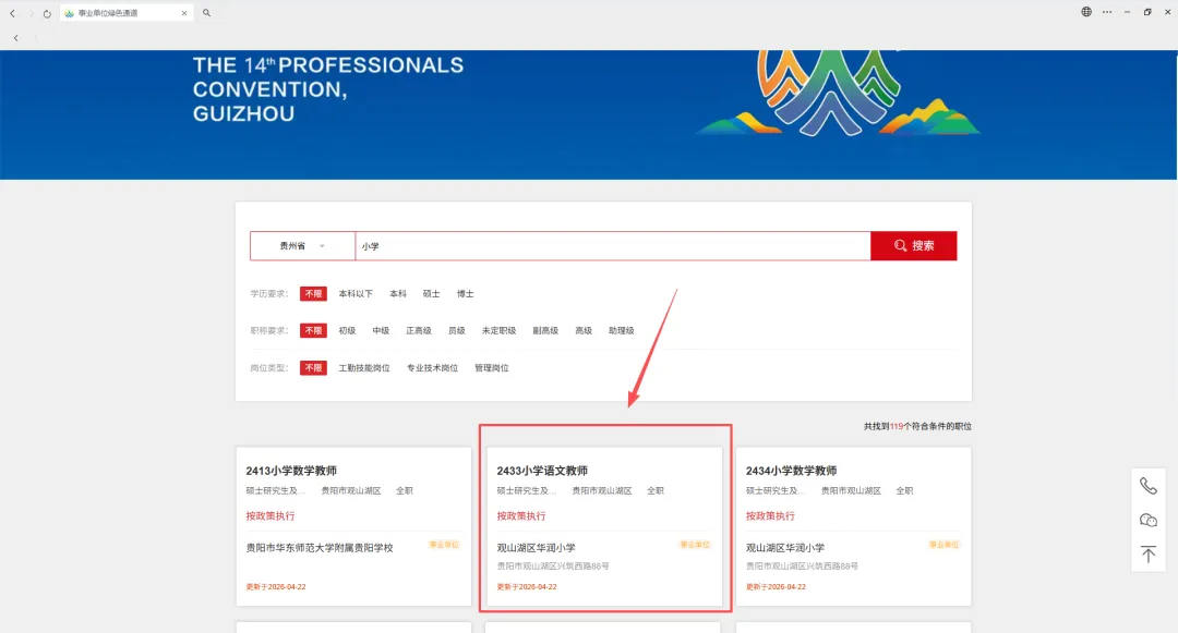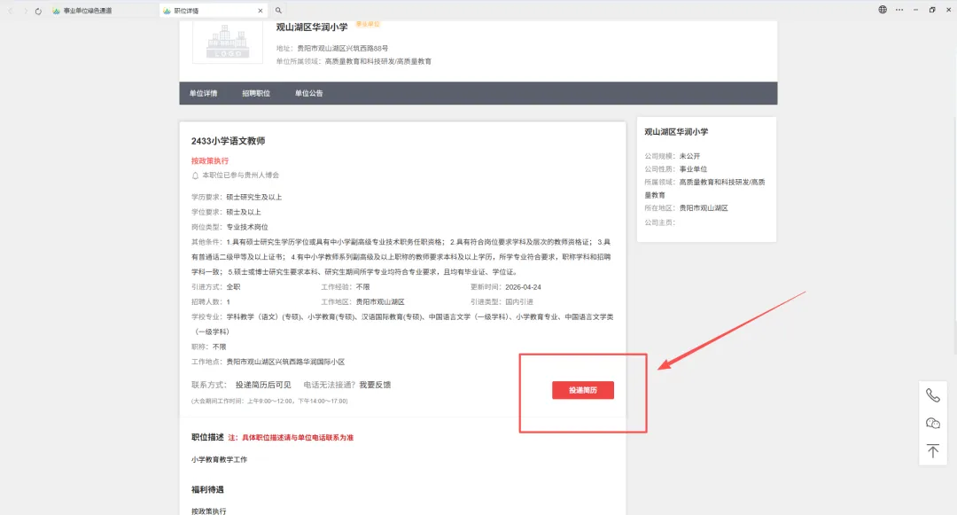 以「贵阳市观山湖区华润小学小学语文教师岗」为例: