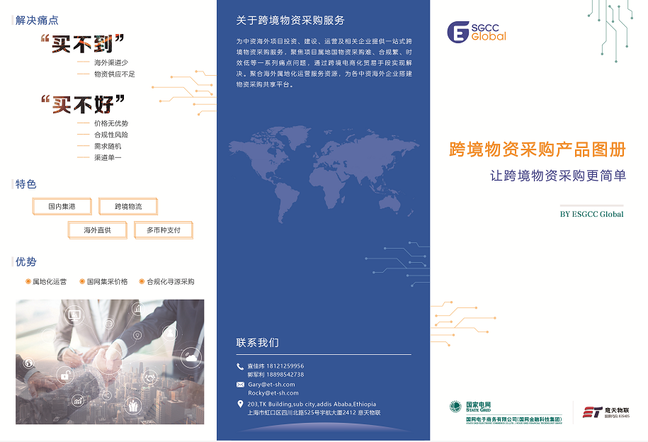 我们定位于海外买家,品牌是ETSG,意天物联获得了国网跨境电商在埃塞俄比亚和巴基斯坦的项目授权,以及和招商局DJIMART的项目合作。和他们共同招募全球优质的供应商、采购商、服务商,依托嘀哒拼船(物流)、嘀咑购(商流),整合海外渠道资源,解决相关中资企业驻外机构在项目属地国物资采购难,合规繁、时效低等一系列采购核心痛点。