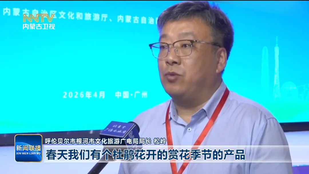 呼伦贝尔市根河市文化旅游广电局局长 松岭 春天我们有个杜鹃花开的赏花季节的产品,然后一到夏天我们还有一个康养避暑旅居的一个产品,还有驯鹿亲密接触,也是邀请大湾区的游客到我们呼伦贝尔,到我们根河来做客。