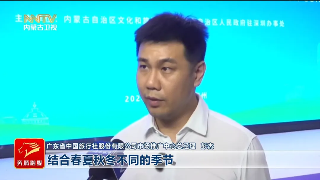 广东省中国旅行社股份有限公司市场推广中心总经理 彭杰 结合春夏秋冬不同的季节,我们可以针对性地选择游客去相互输送,尤其是刚才也看到内蒙古在演唱会、景区文旅方面其实也有很多的创新,我们也希望把这些带给我们广东的游客。
