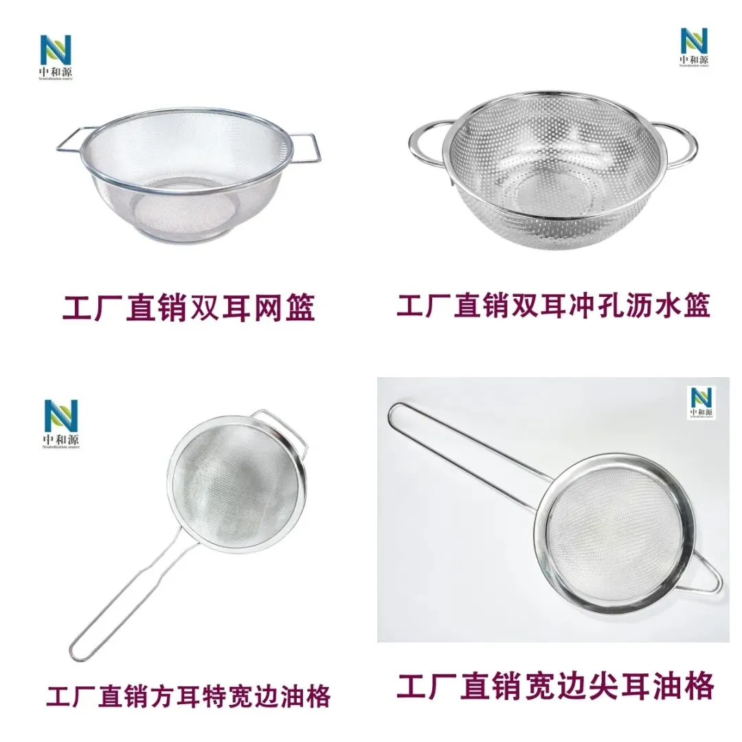 本公司生产各种规格的不锈钢滤盆、网漏、线漏、捞篱、粉篱,沥水篮、油格、炒勺、炒铲等厨具用品的生产,定制加工,销售。本厂配备先进的生产设备、精湛的工艺及技术,具备产品设计研发、模具制作的专业技术人员团队,合理的价格、优质的服务是我们一贯的追求和承诺, 欢迎各界朋友莅临参观、指导和业务洽谈。