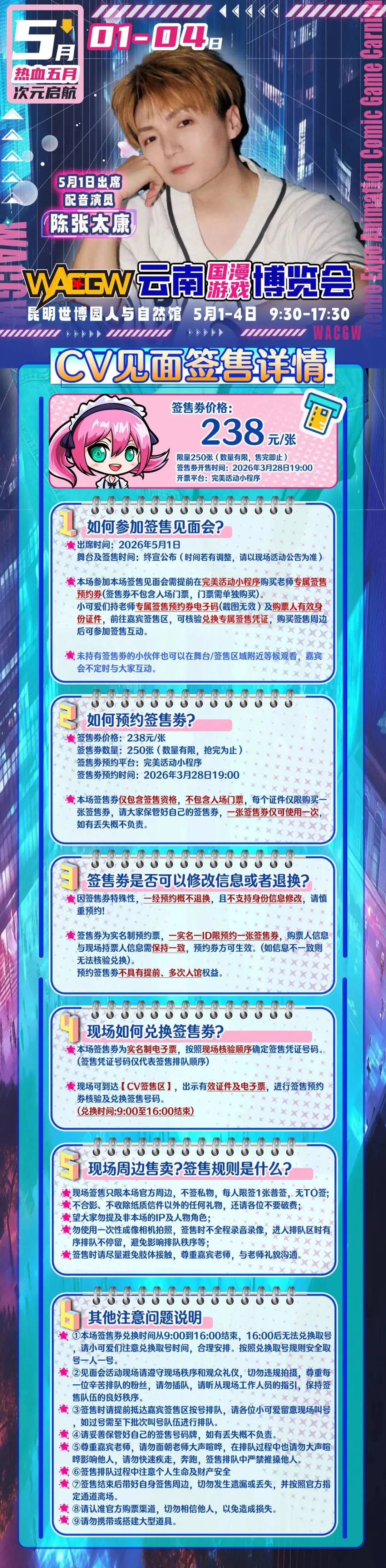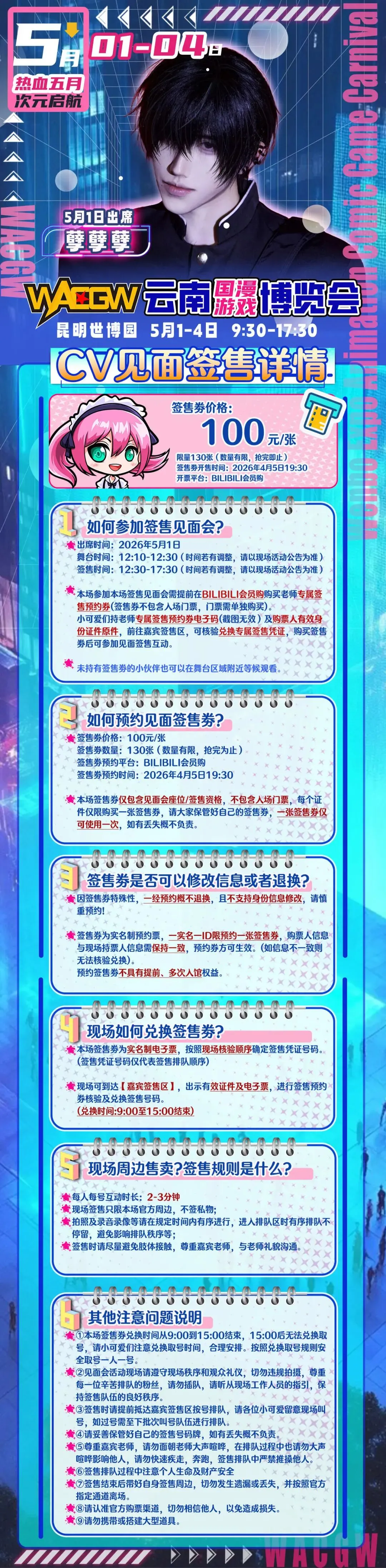 【昆明漫展】云南·WACGW国漫游戏博览会-签售规则5.1-5.4-五一假期