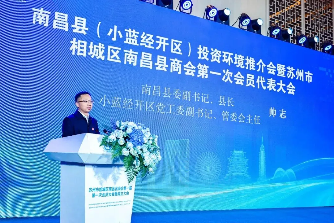 帅志代表县委、县政府向商会的成立表示热烈祝贺,向长期以来关心、帮助和支持南昌县(小蓝经开区)发展的各界朋友表示衷心感谢,并简要介绍了县(区)经济社会发展情况。他指出,当前,南昌县(小蓝经开区)正深入贯彻落实党的二十届四中全会精神,紧扣 “1+4+N” 产业结构布局,深入实施制造业 “6410” 行动计划,产业基础扎实、发展动能强劲、营商环境优良,是投资兴业的优选沃土,热忱期盼广大在外乡友、企业家常返乡走访考察、投资布局、扎根发展,深度参与家乡建设,共享发展机遇,共创美好未来。