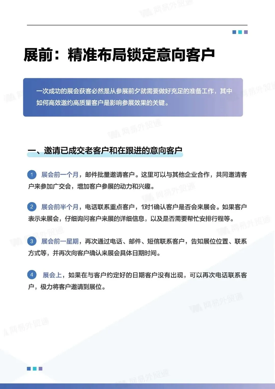 展前:精准邀约老客户与潜在新客户,利用多渠道预热。