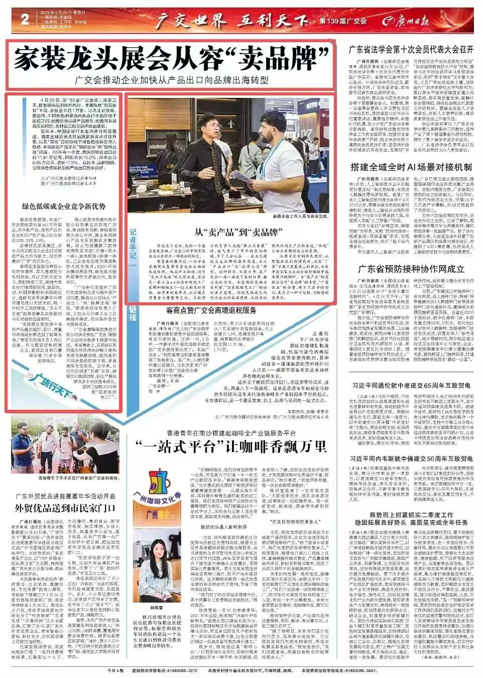 4月26日,广州日报刊发《家装龙头展会从容“卖品牌”》,内容如下: