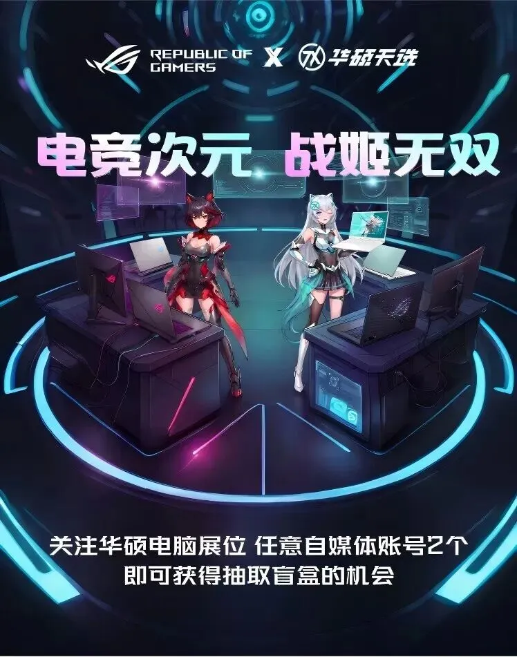多款全新电竞本线下实景体验,满帧畅玩各类游戏;关注展位账号,即可参与盲盒抽奖,解锁华硕限定周边福利。