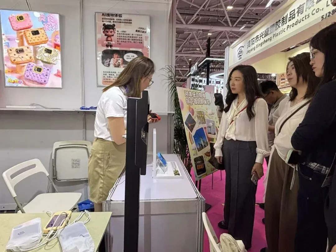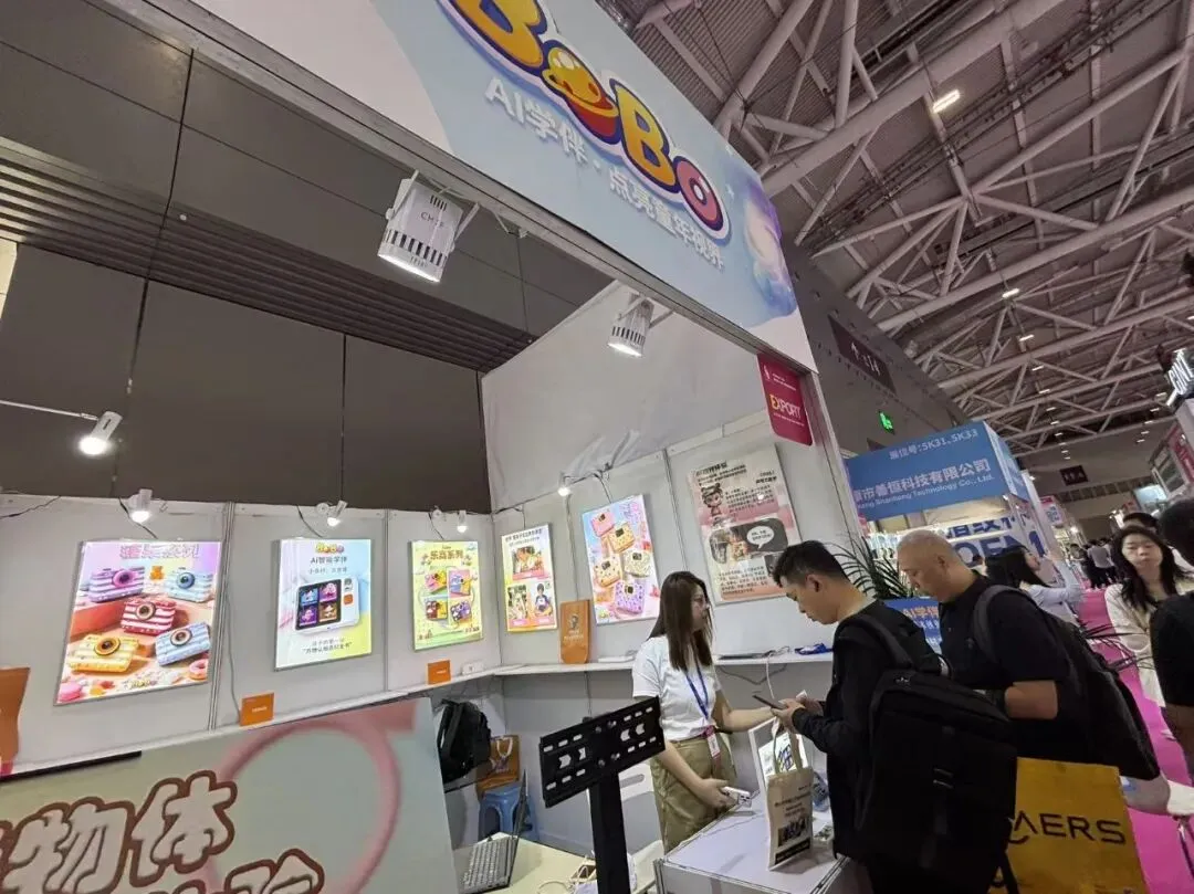 展位现场人气爆棚,小朋友们积极体验AI学伴机,打卡赢好礼,氛围感拉满~