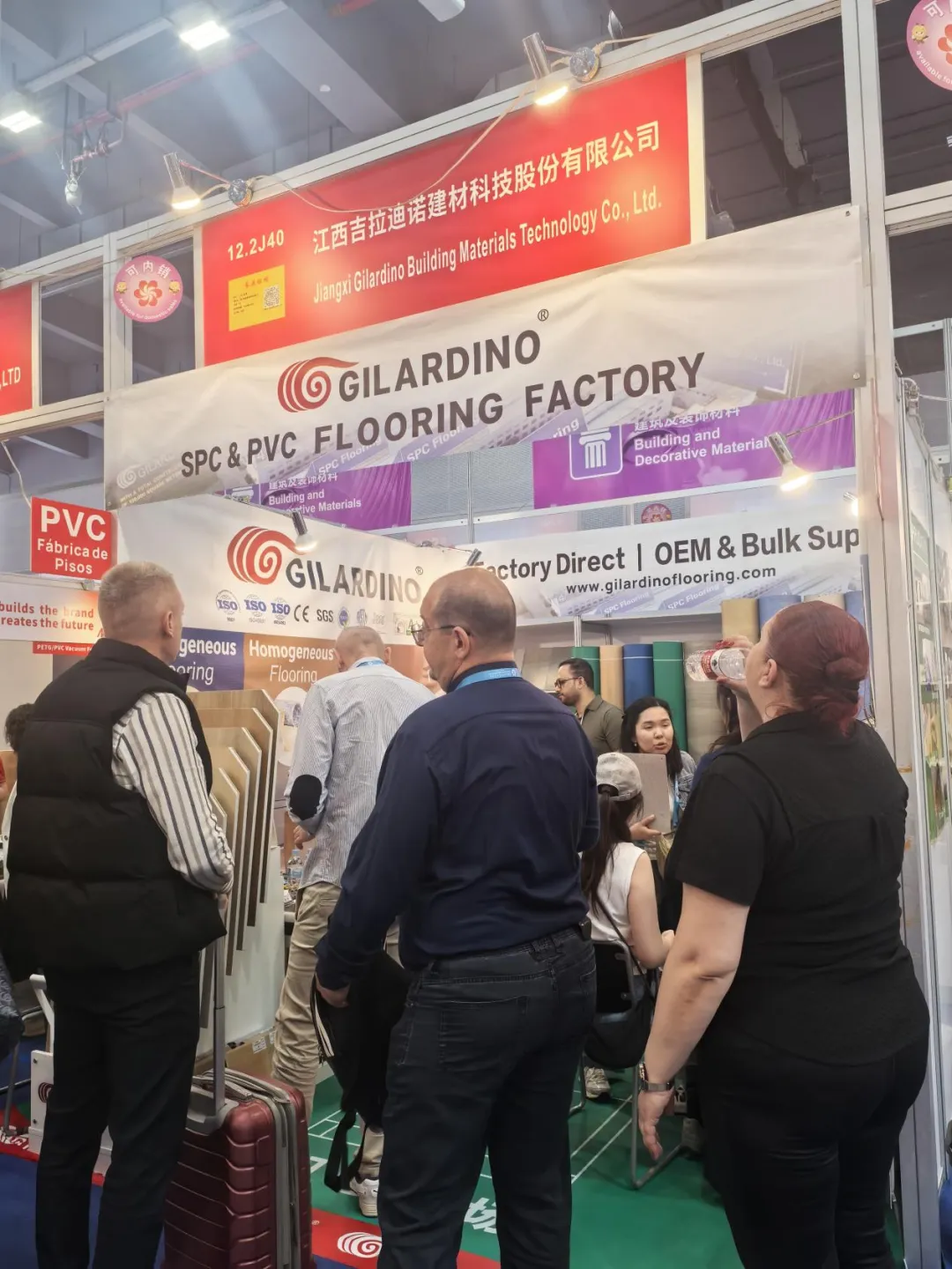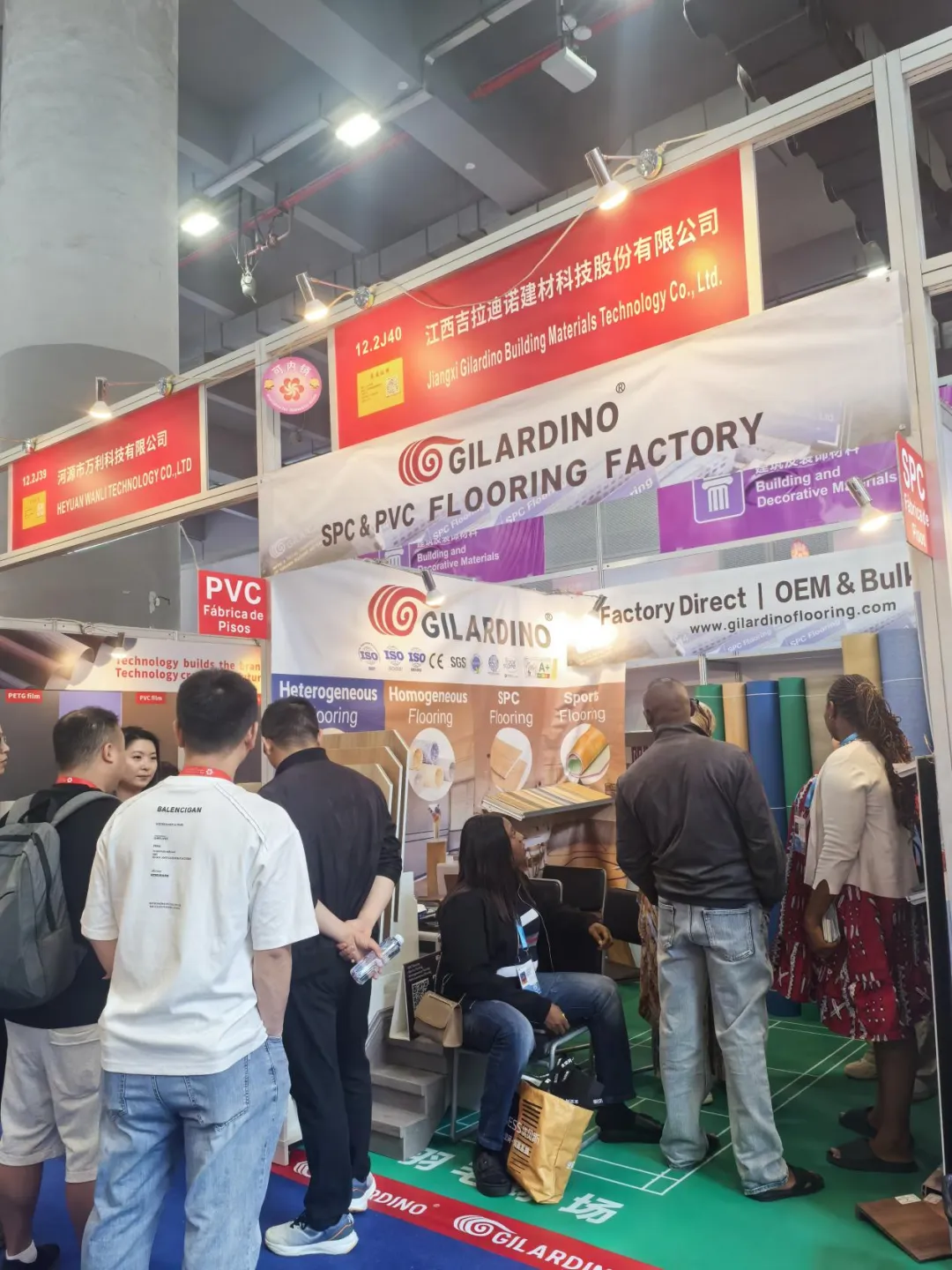 展会现场,吉拉迪诺展位人气持续高涨。企业高端康养系列产品金色海岸线、欧标SPC锁扣地板等多款明星产品集中亮相,工作人员以专业的讲解、细致的服务,向前来洽谈的海内外采购商、行业客商,详细介绍产品工艺、性能优势、定制服务及整体解决方案。针对不同区域市场需求、行业应用痛点,团队一对一沟通交流,深度挖掘合作契机,精准匹配客户个性化采购与项目合作需求。