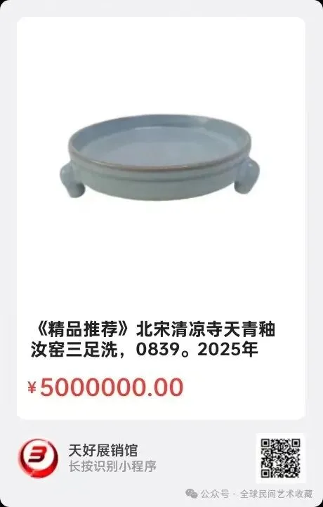 北宋清凉寺天青釉汝窑三足洗,高4公分,口径14.2公分,底径14.2公分。此洗油面温润,老化明显,特别是在三个足处使用磨损痕迹肉眼可见。开片自然,玛瑙入釉。经量子鉴定到北宋,微观鉴定到北宋。因此是一件很难遇到的收藏品!2025年 4月 30日,经天好评审团评审,以6票优势荣登精品榜,获第169期天好海选精品。来源0839.V.