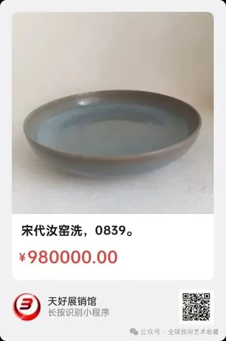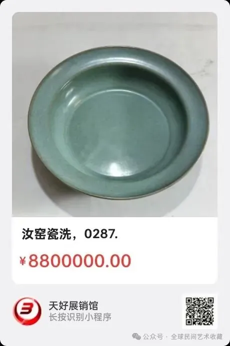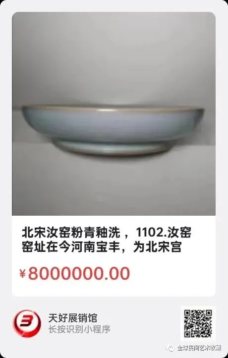 北宋汝窑粉青釉洗 尺寸:直径14厘米 高3厘米。汝窑窑址在今河南宝丰,为北宋宫廷烧制瓷器,汝窑为宋代名窑中传世品最少的一个品种,宋代五大名窑汝瓷为愧,流传至今不足百件。汝窑瓷胎多数如香灰,透过釉层,其色调与官窑器有些近似。汝窑瓷器的釉色不同于同时期其他的青瓷,呈现一种淡雅的青色,浓淡不一,色调稳定,变化较少,具有独特的风格。汝窑器以精美名贵著称,深受皇室珍爱。此洗经本平台鉴定专家曹晓宇老师鉴定为北宋汝窑瓷器真品、精品。具有极高的陈设把玩价值和经济投资价值。来源:1102。