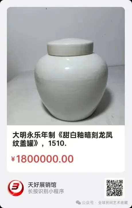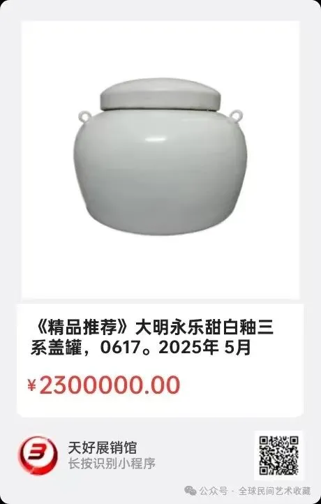 大明永乐甜白釉三系盖罐。口径:9.8cm底部:13.8cm高度:10.4cm。2026年 4月1日,经天好评审团评审,以6票优势荣登精品榜,获第204期天好海选精品。来源0617.V。