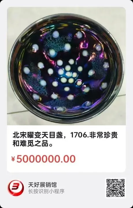 宋建窑曜变天目茶盏,尺寸高7.4厘米口径12.4厘米底足4.2厘米。2026年 3月25日,经天好评审团评审,以7票优势荣登精品榜,获第203期天好海选精品。来源1597.V。