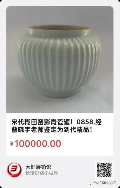 宋代糊田窑影青瓷罐!高8.5厘米!底6.5厘米!上口7.6米!经曹晓宇老师鉴定为到代精品!来源:0858。