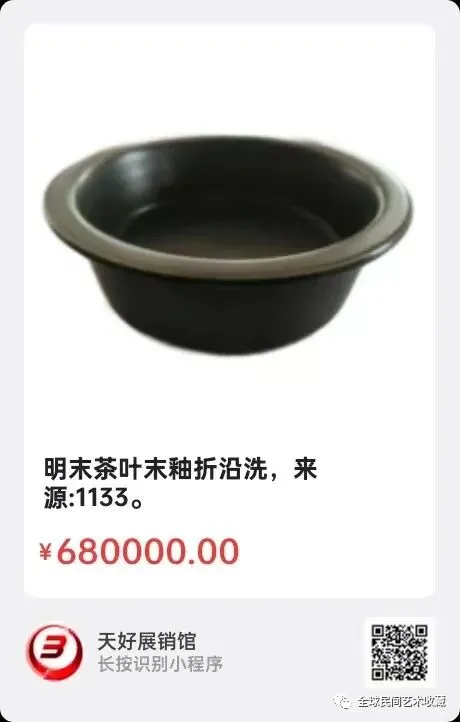 明末茶叶末釉折沿洗,口径12.3厘米-内径10.3厘米-底径9.7厘米-高4厘米,来源:1133。