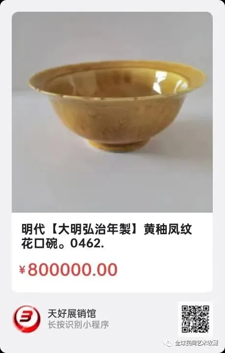 明代【大明弘治年製】黄秞凤纹花口碗。高6厘米口径15厘米底直径6厘米。来源:0462.