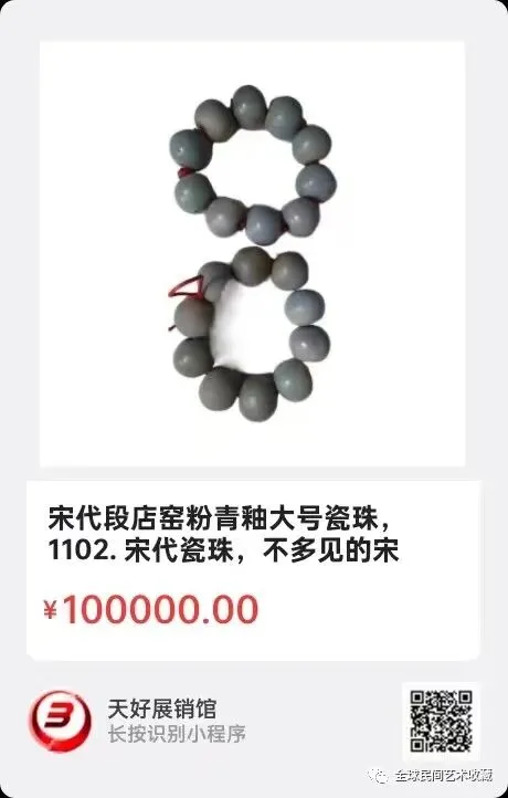 宋代段店窑粉青釉大号瓷珠 ,尺寸:直径约3厘米。宋代瓷珠,不多见的宋代瓷器品种,经本平台鉴定专家曹晓宇老师鉴定为宋代瓷器真品,有一定的把玩和收藏价值。来源:1102。