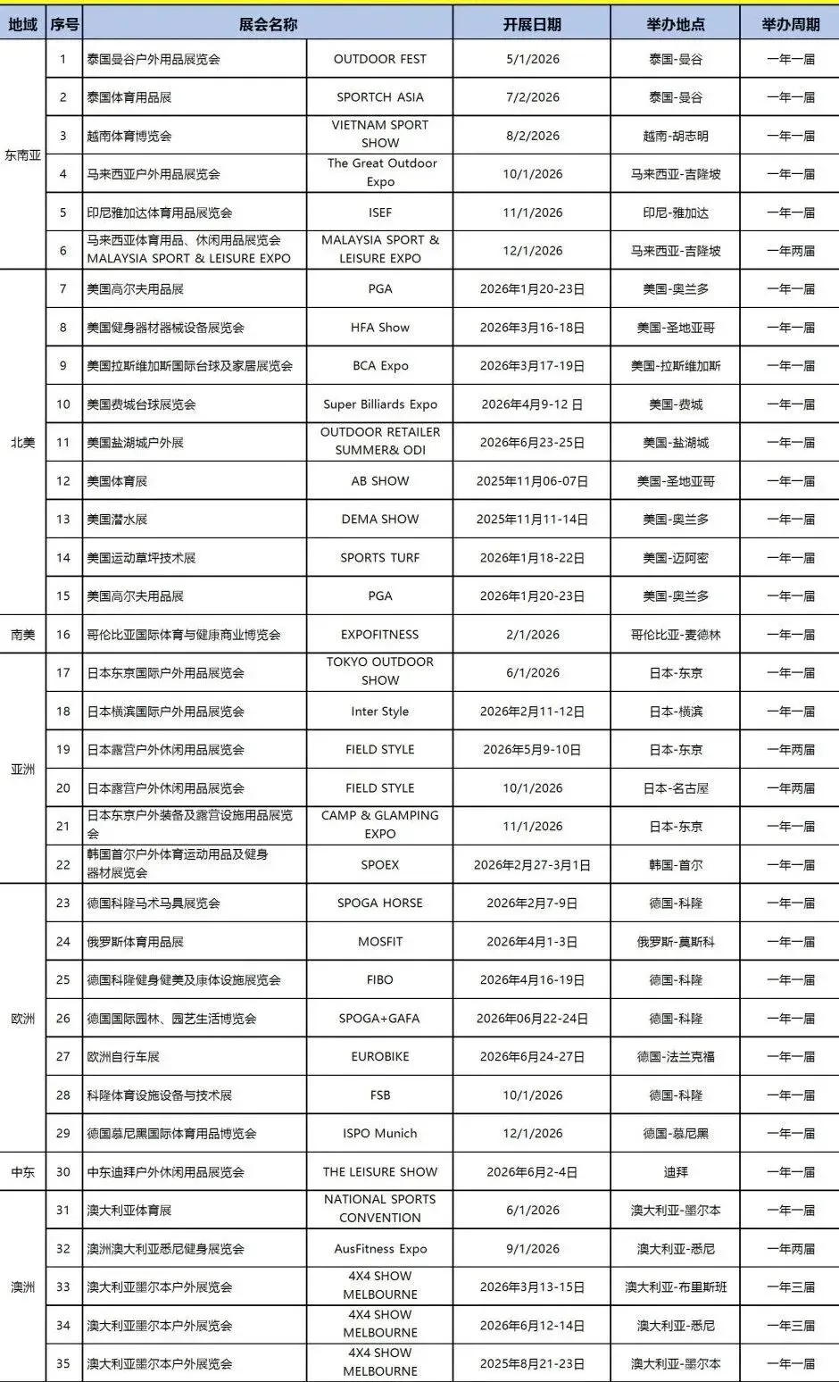 2026年全球户外及体育用品展计划表