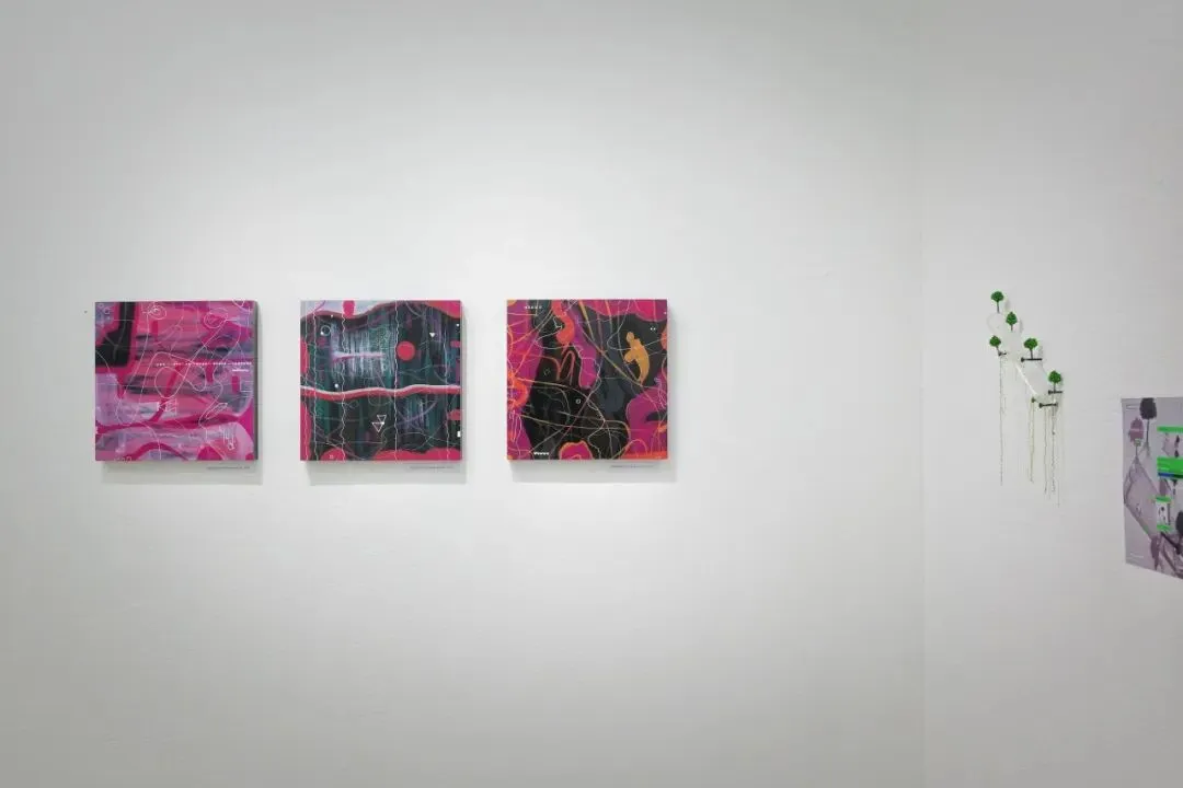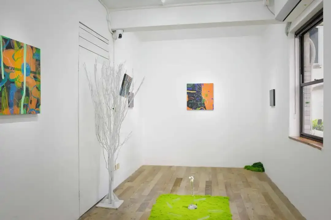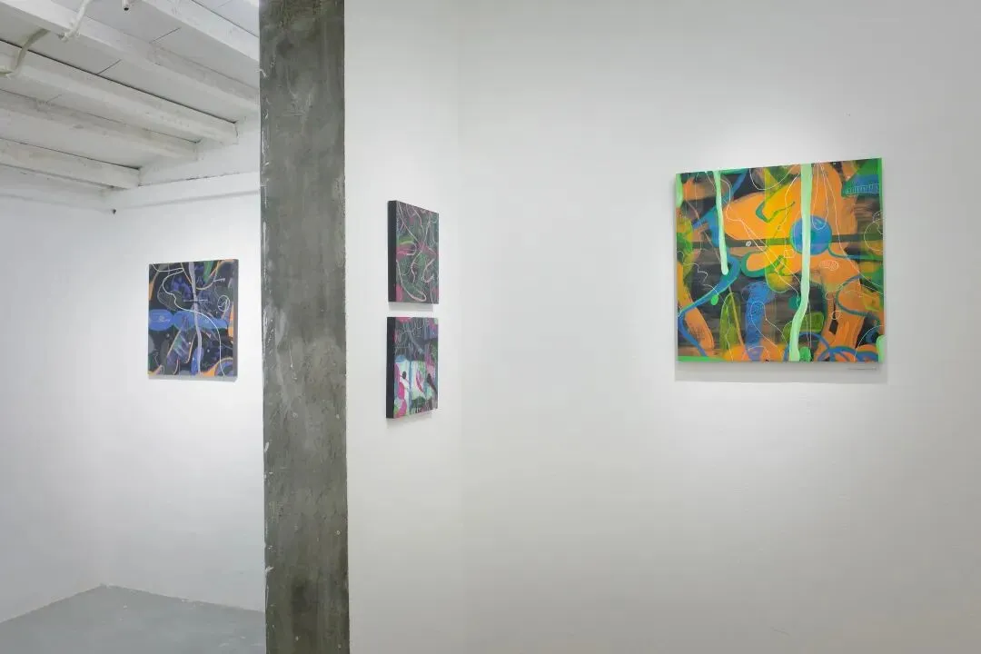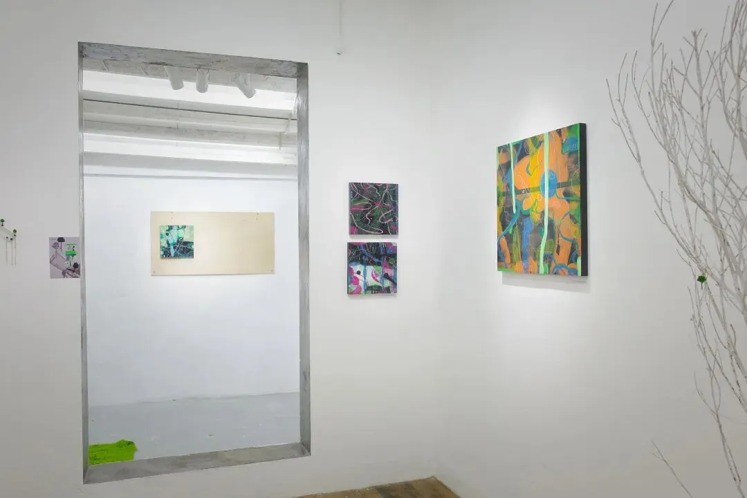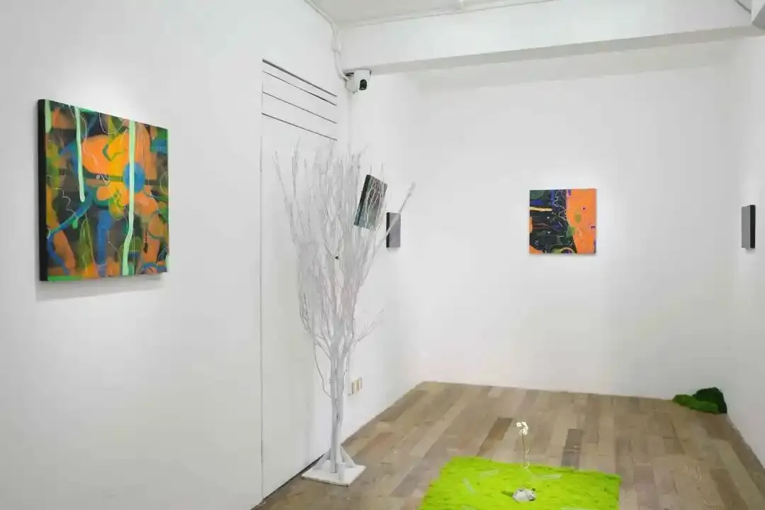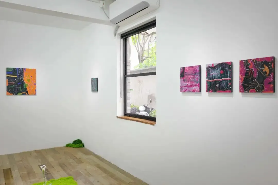 我的作品里,大量的线条与有机形体、几何形体彼此穿插,自由地生长、发散、覆盖、重塑。几何形体刚硬而充满能量,线条柔软却坚韧,理性与感性在其中交织相融。它们像树木,盘根错节,生意盎然;像宇宙,吞纳万象;也像平行时空,相似却又各自不同。我从自然界提取元素,将它们化为抽象的表达。