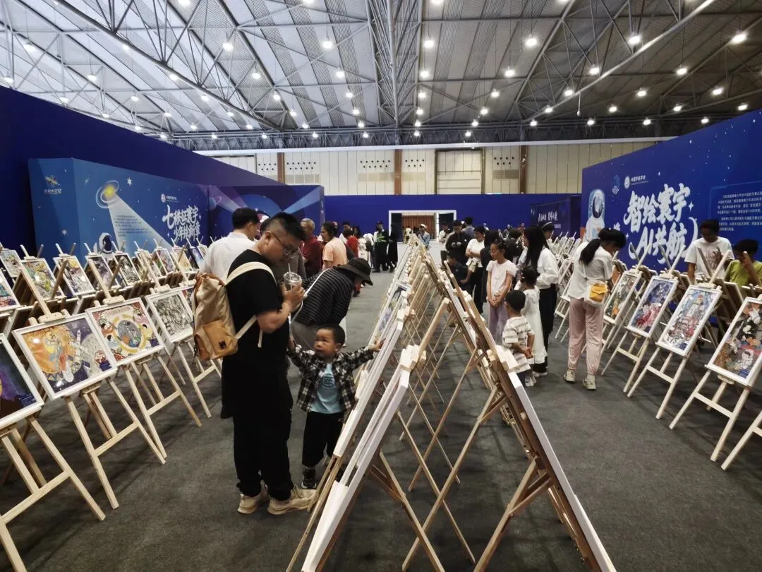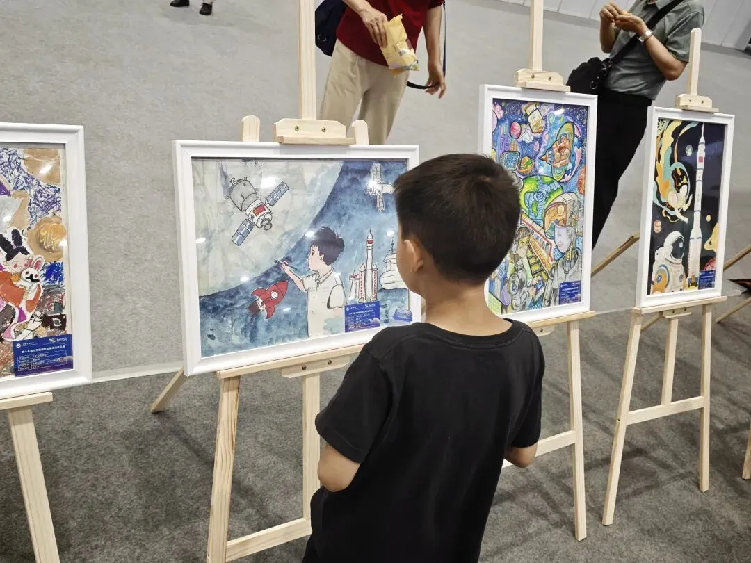 其中由中国宇航学会举办的「我的太空梦」青少年太空画展,没有复杂的参数,没有硬核的术语,只有数百幅从全国万余件投稿中脱颖而出的童真画作。