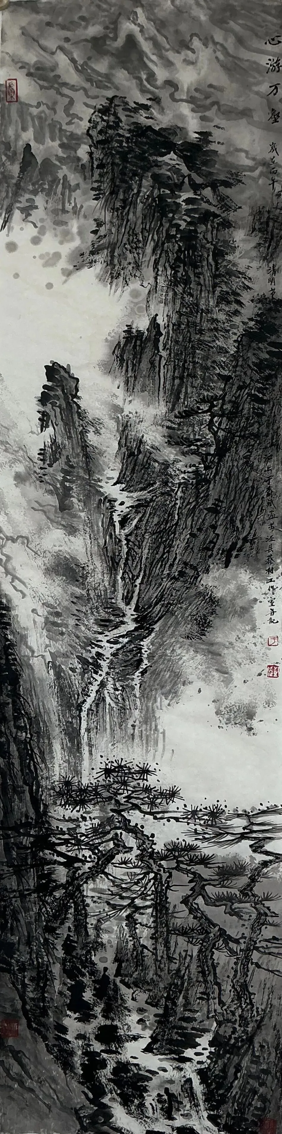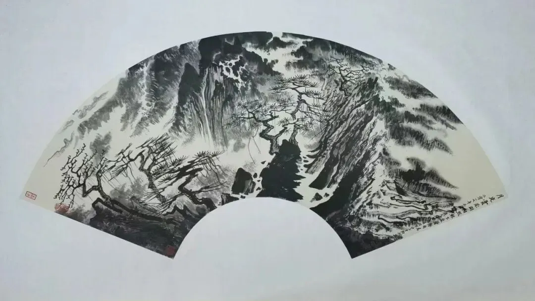 峭拔的峰岩,蓊郁的林木,叮咚的流泉,洪濛的云雾,苍茫的视野……这一切都融入了于树斌纵横挥洒、淋漓酣畅的墨韵之中。