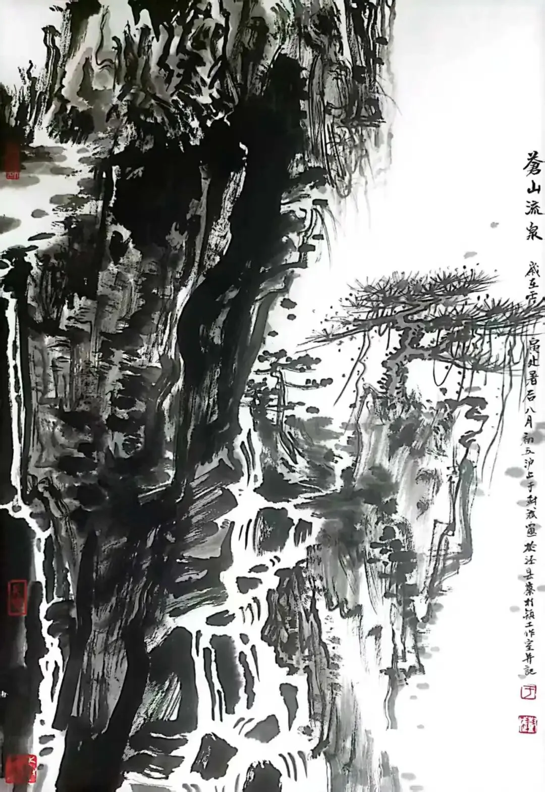奇者不在位置而在气韵,不在有形而在无形。尤其在先生近几年的泼墨山水创作中,大胆地利用泼墨技法,充分利用泼墨中出现的万千气象及丰富、偶然的墨韵与肌理,避免了画家在格局上的局限,将“泼”与“写”有机结合起来,将“泼”的“自然”、精彩与“写”的意象相衔接呼应,使之融为一体,呈现出融通天地、孕化古今的大境界。