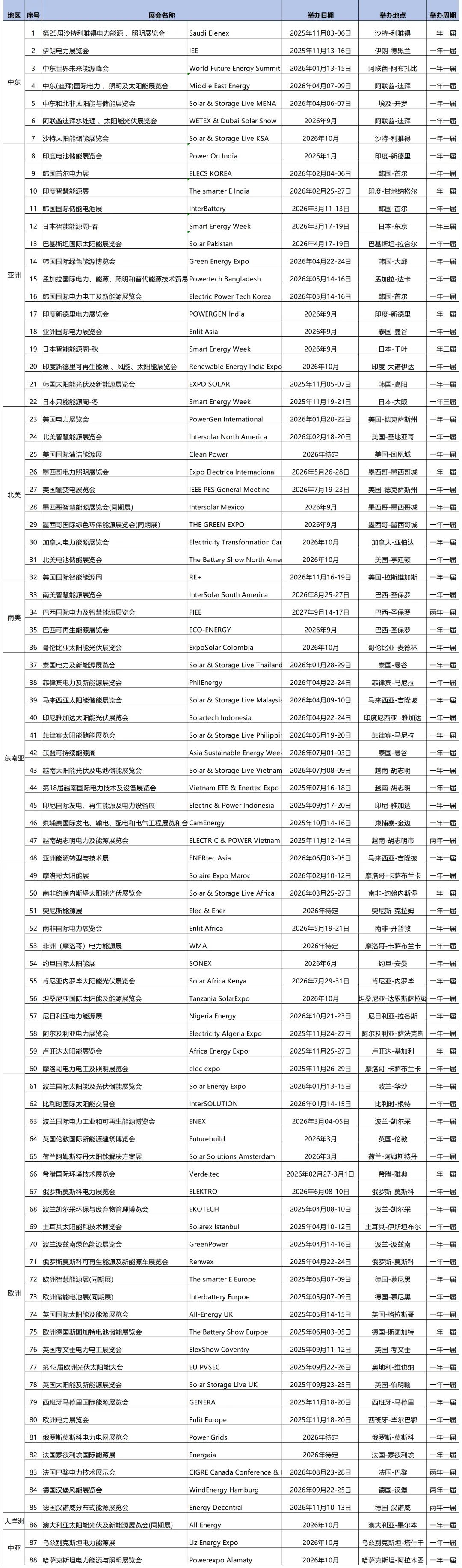 光伏、太阳能展全球计划表