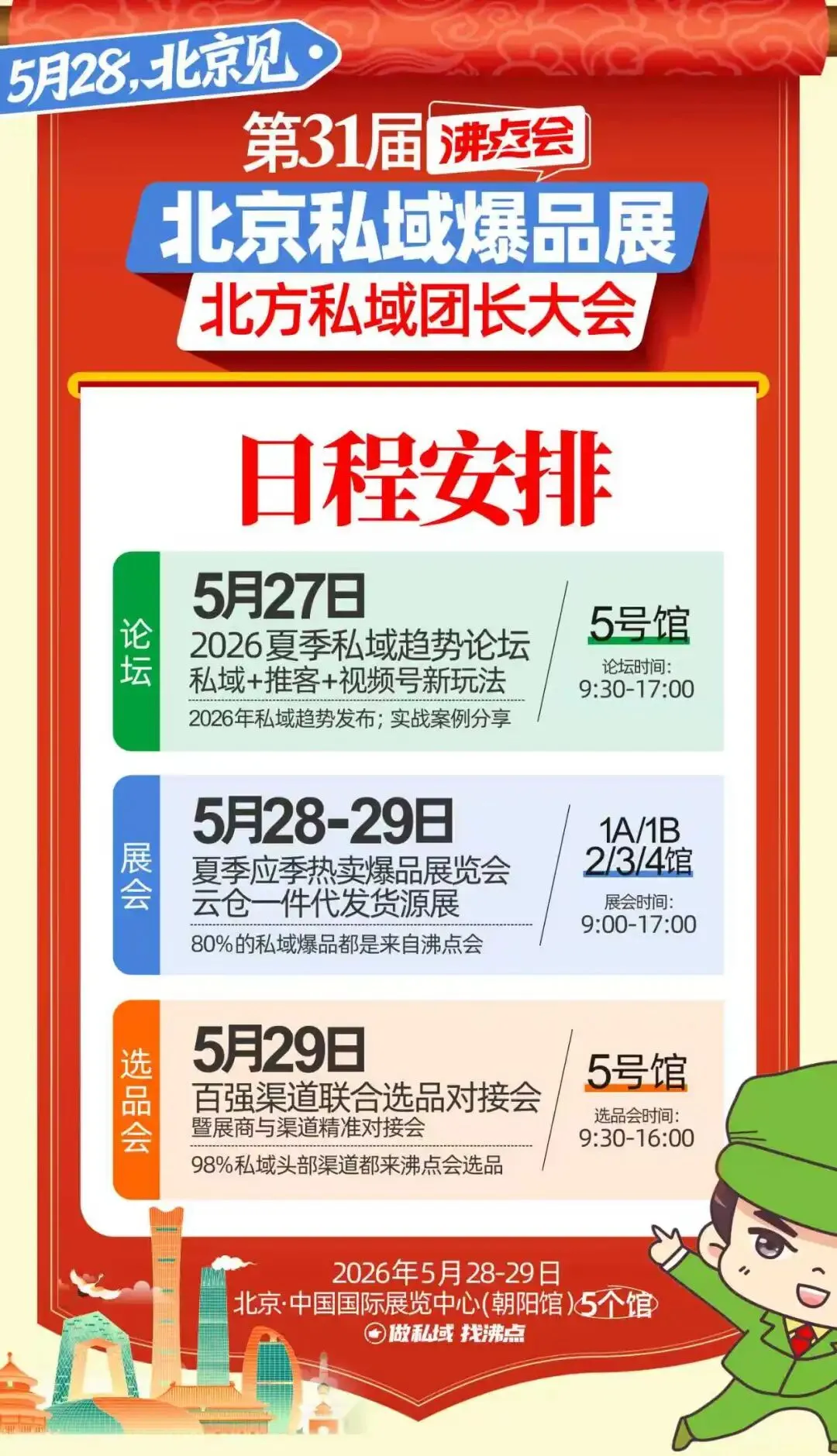 私域经济全面爆发,南北渠道加速融合,抢占北方私域蓝海已是品牌、供应链、渠道方的必争之路!2026年5月28日-29日,第31届沸点会・全国私域团长大会暨私域新渠道爆品展览,将在北京·中国国际展览中心(朝阳馆)重磅开幕!
