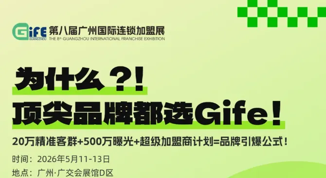 2026年5月11-13日,2026第八届广州国际连锁加盟展将于广州广交会展馆D区盛大举行。展会坐拥10万㎡展区,汇聚1500+实力品牌,覆盖餐饮、零售、生活服务、娱乐、教育及一站式开店六大板块50余种业态。立足华南、辐射全国,本届展会致力于构建专业化投资对接平台,助力品牌与投资者精准配对,高效促成交易。拒绝盲从热搜,来现场洞察真实商机,共探2026加盟新蓝海。