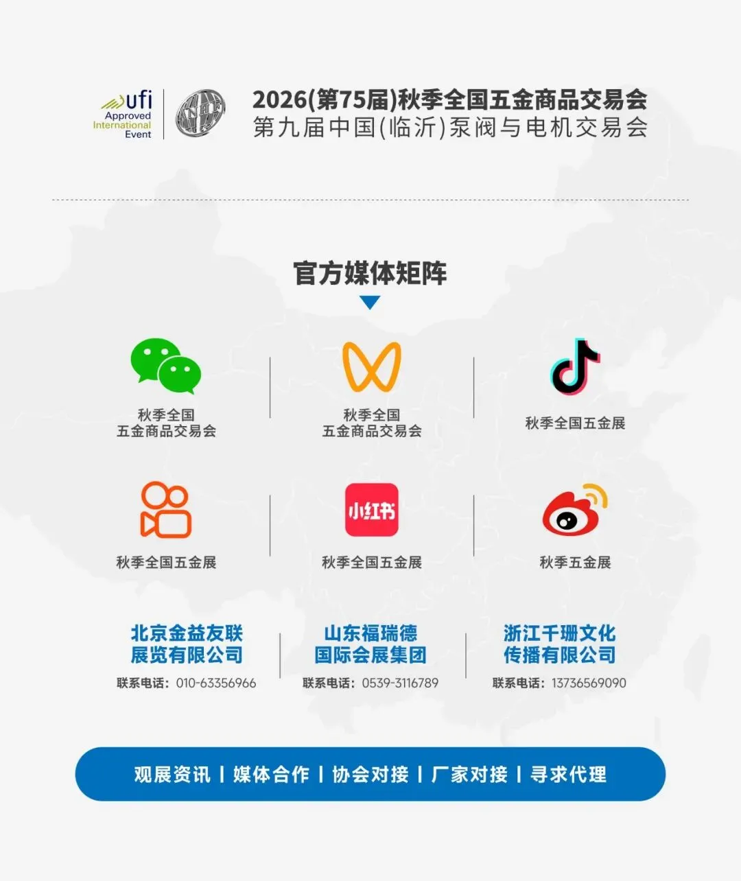 目前,2026(第75届)秋季全国五金商品交易会暨第九届中国(临沂)泵阀与电机交易会招商通道全面开启,我们已做好准备,诚邀全球五金人共赴临沂,在新的起点上,续写合作佳话,共谱时代新篇!