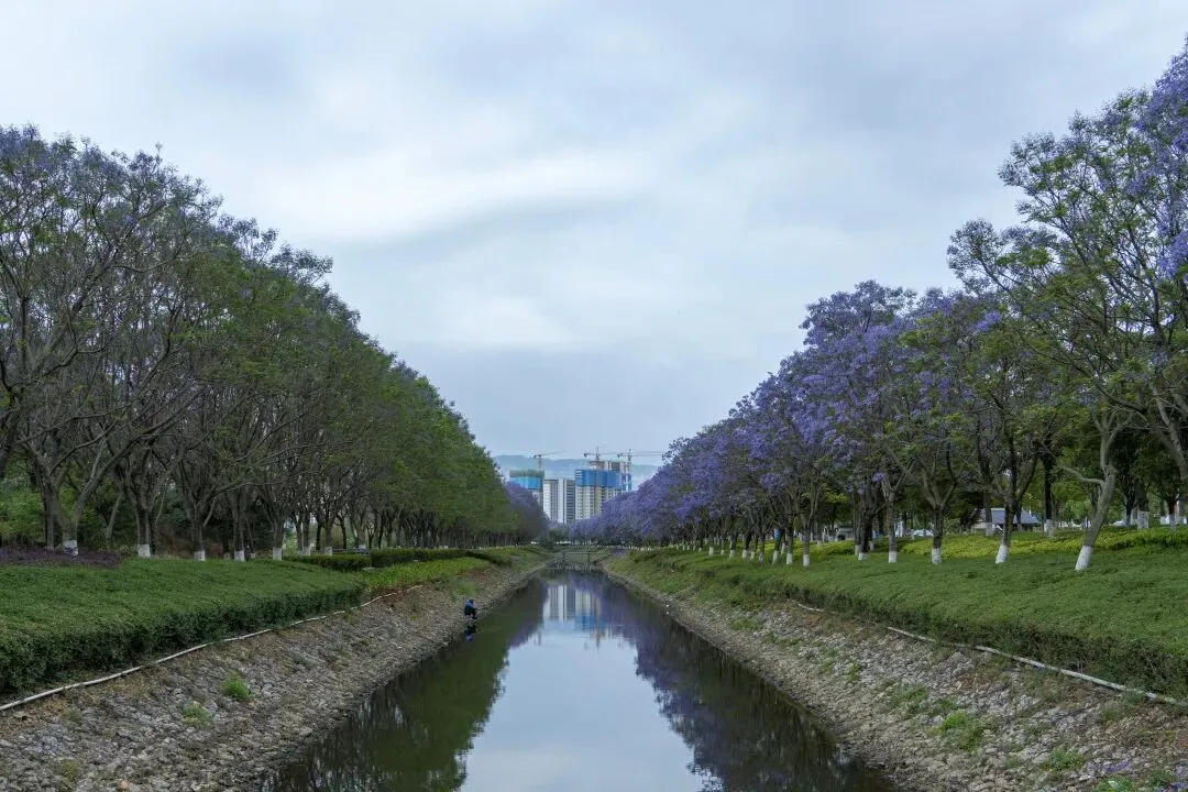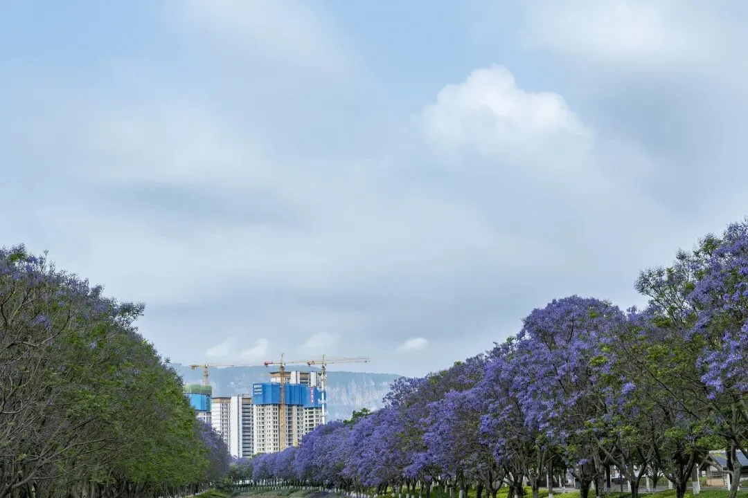 当春风渐渐褪去了桃红柳绿的轻佻,城市便悄然迎来了蓝花楹的主场。而在昆明,有一个地方,将这份紫色演绎得格外动人——那就是昆明会展中心周边。