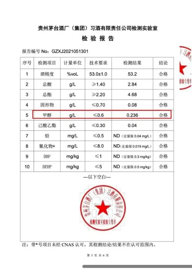 这是我们在公开渠道查到的,某款家喻户晓的名酒送检报告。