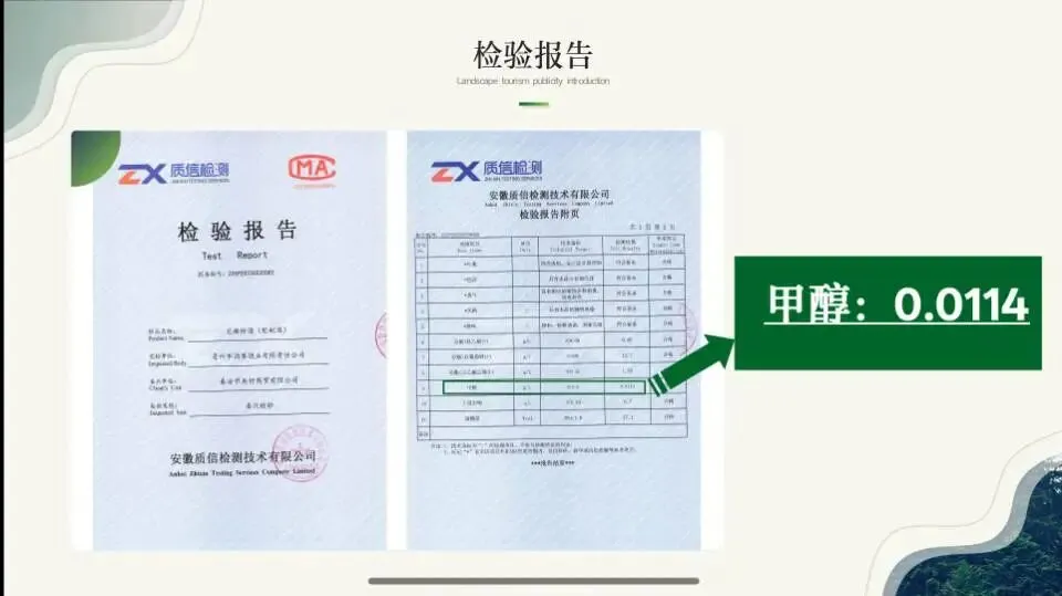 报告显示,它的甲醇含量是:0.0114g/L。