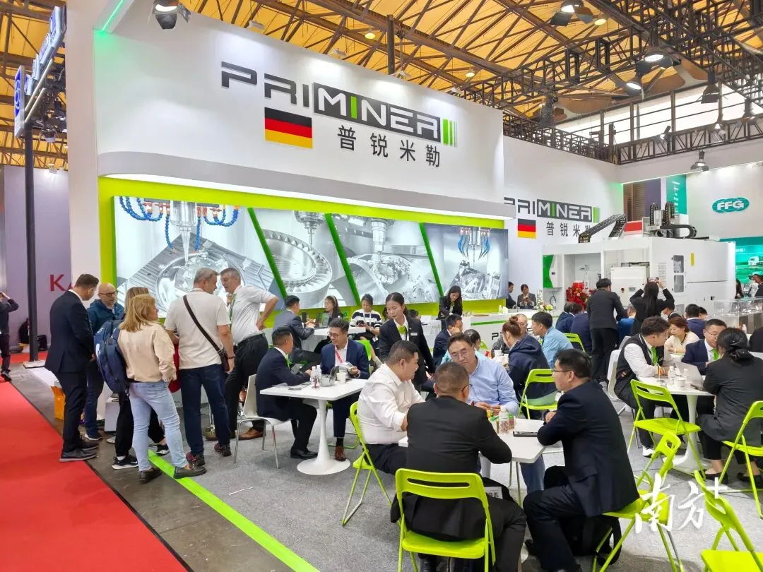 在数控机床展W5馆德国展区,普锐米勒机床吸引行业专家驻足。这家中德合资高端五轴机床企业,在2025年7月将全球制造中心落户恩平。