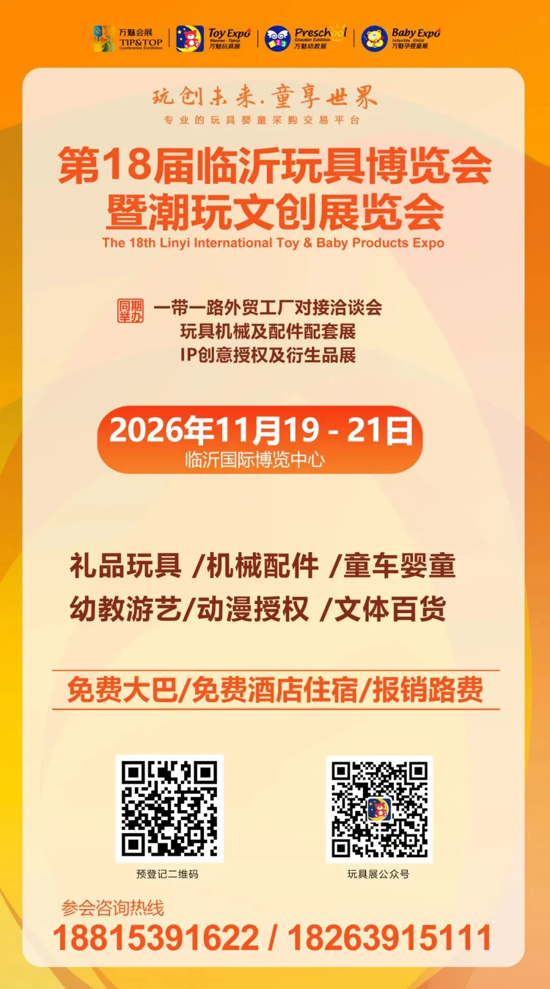 第十八届(临沂)国际玩具产业及婴童用品博览会2026年11月,临沂国际博览中心