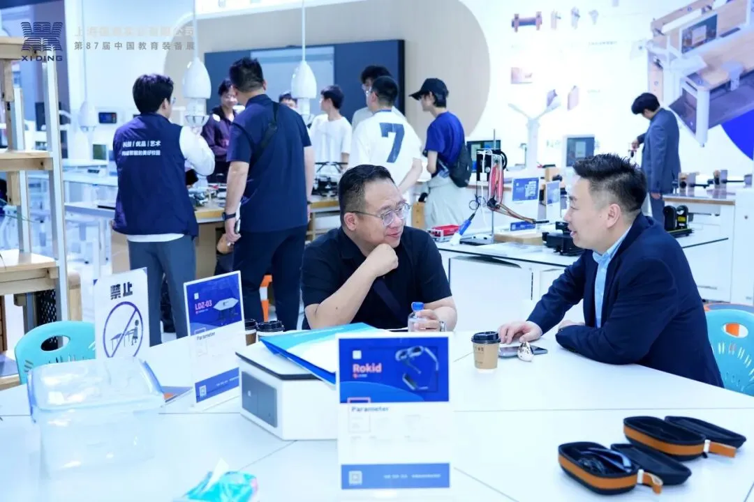展会步入第三日,现场热度持续高涨、盛况依旧。展馆内客流源源不断,氛围热烈十足。来自全国各地的教育行业同仁、学校负责人、渠道合作伙伴纷纷莅临展位驻足观摩。大家近距离观摩产品演示、体验数字化科教设备,细致咨询项目优势、落地模式与适配场景,围绕当下中小学科创教育、劳动教育的政策趋势、教学痛点、升级方向展开充分交流,思维不断碰撞,尽显教育行业蓬勃向上的活力。