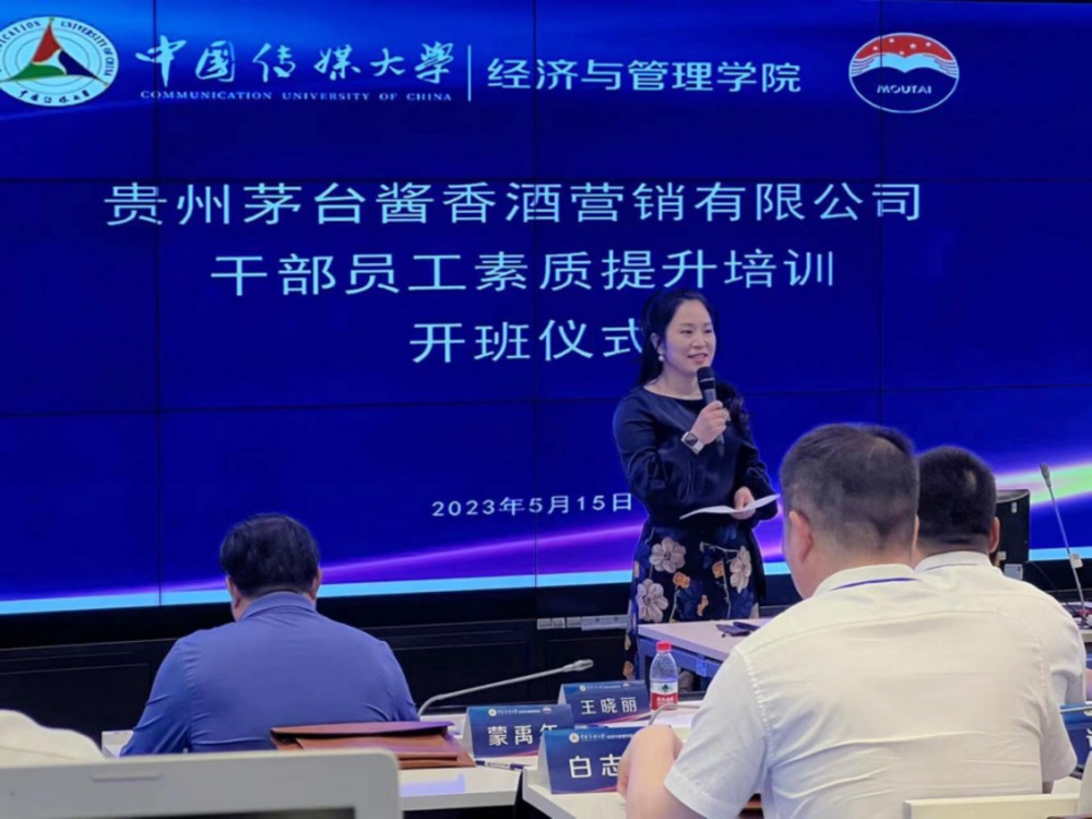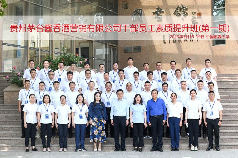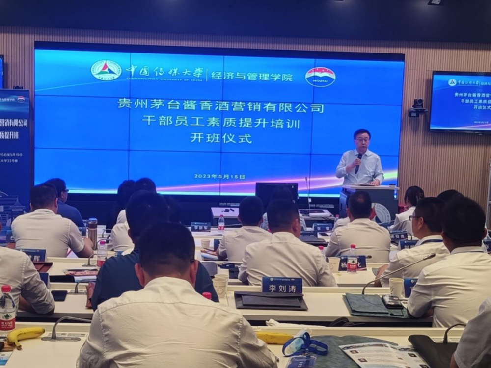 5月15日,贵州茅台酱香酒营销有限公司干部员工素质提升班(第一期)在中国传媒大学顺利开班,中国传媒大学党委常委、副校长李新军,中国传媒大学经济与管理学院党委书记王晓丽,中国传媒大学经济与管理学院社会服务办公室负责人薛永斌,贵州茅台酱香酒营销有限公司党委副书记、纪委书记、工会主席付月秋等领导出席开班仪式,并分别致辞。