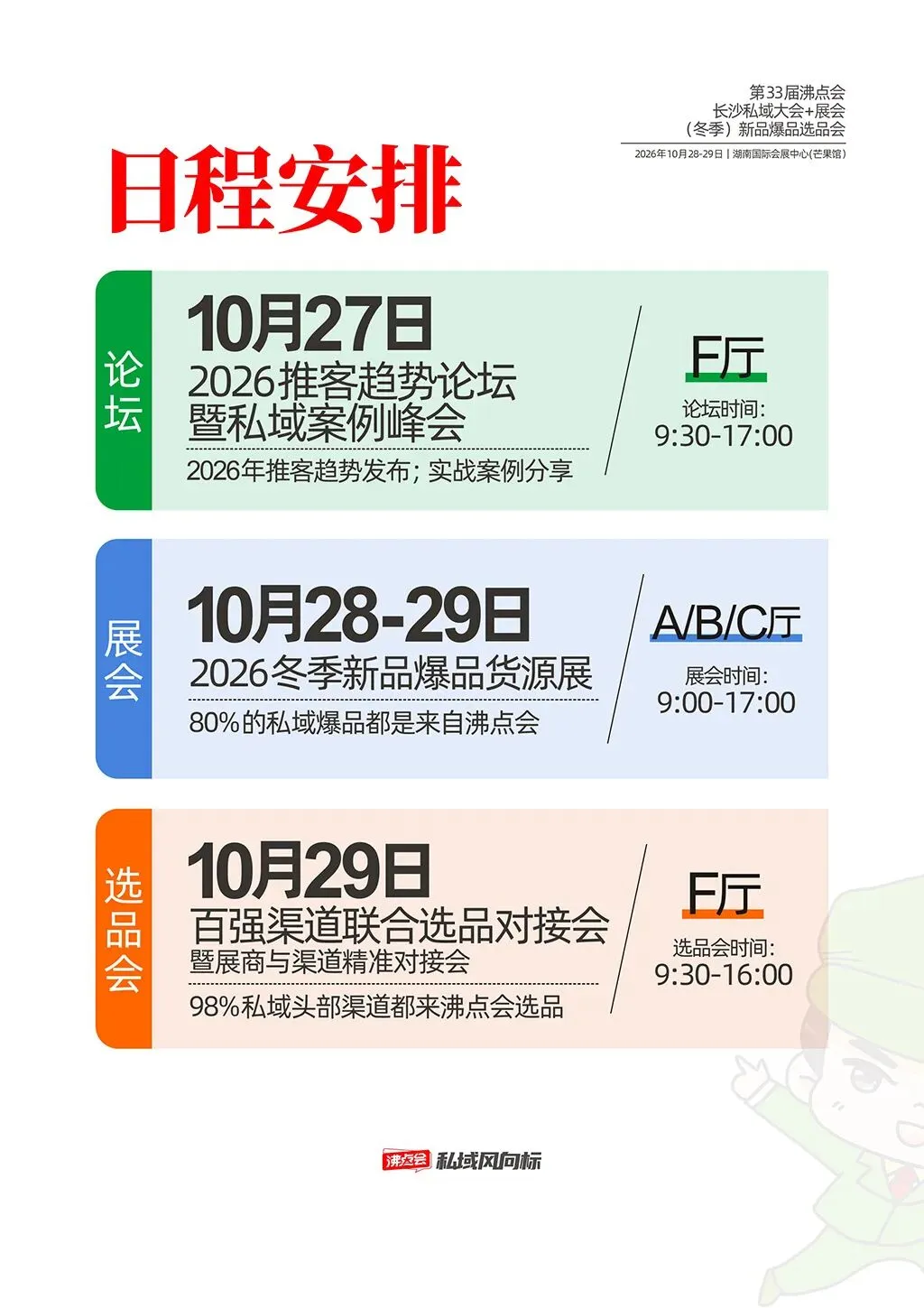 做私域供货、渠道选品、团长对接的朋友,必看这篇!第33届沸点会·长沙私域爆品展,精准卡位年末选品黄金期,展会规模、报名流程一次性讲清楚,精简不啰嗦,看完直接上手。