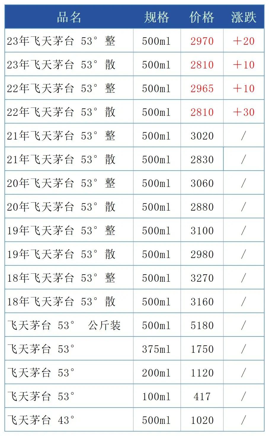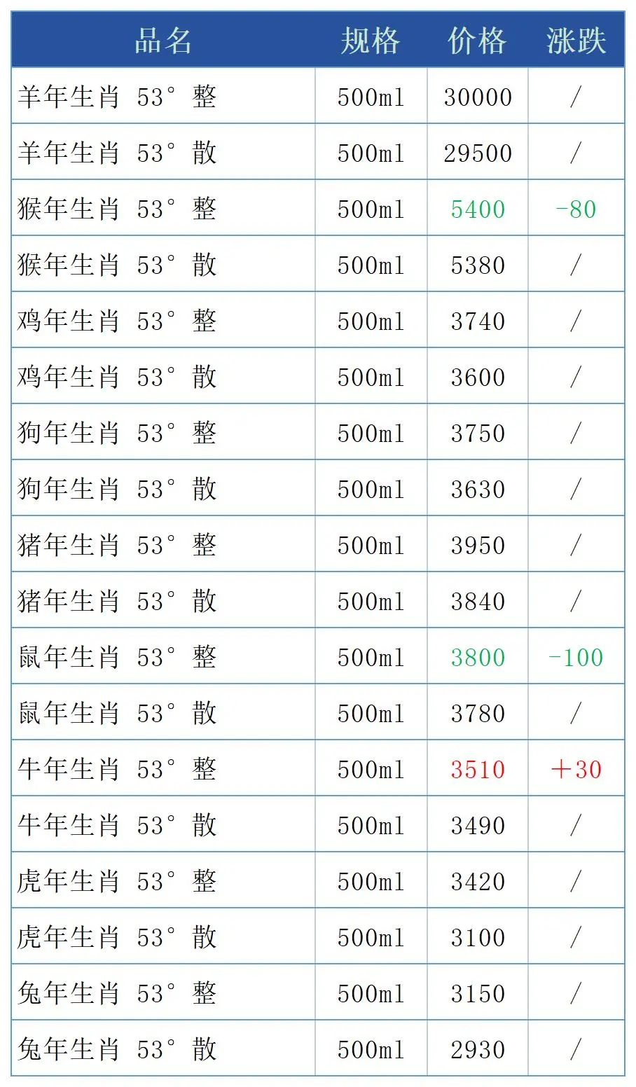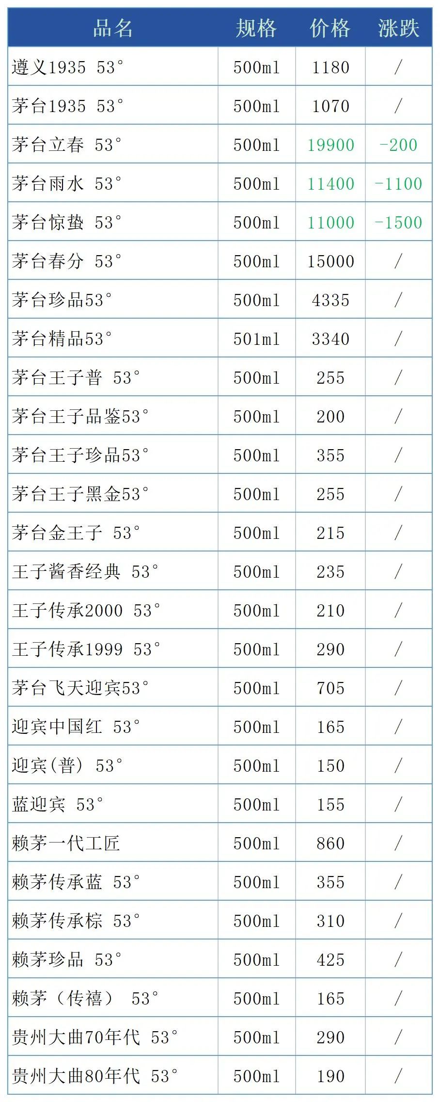 茅台节气酒大跌,每日名酒报价2023年5月16日