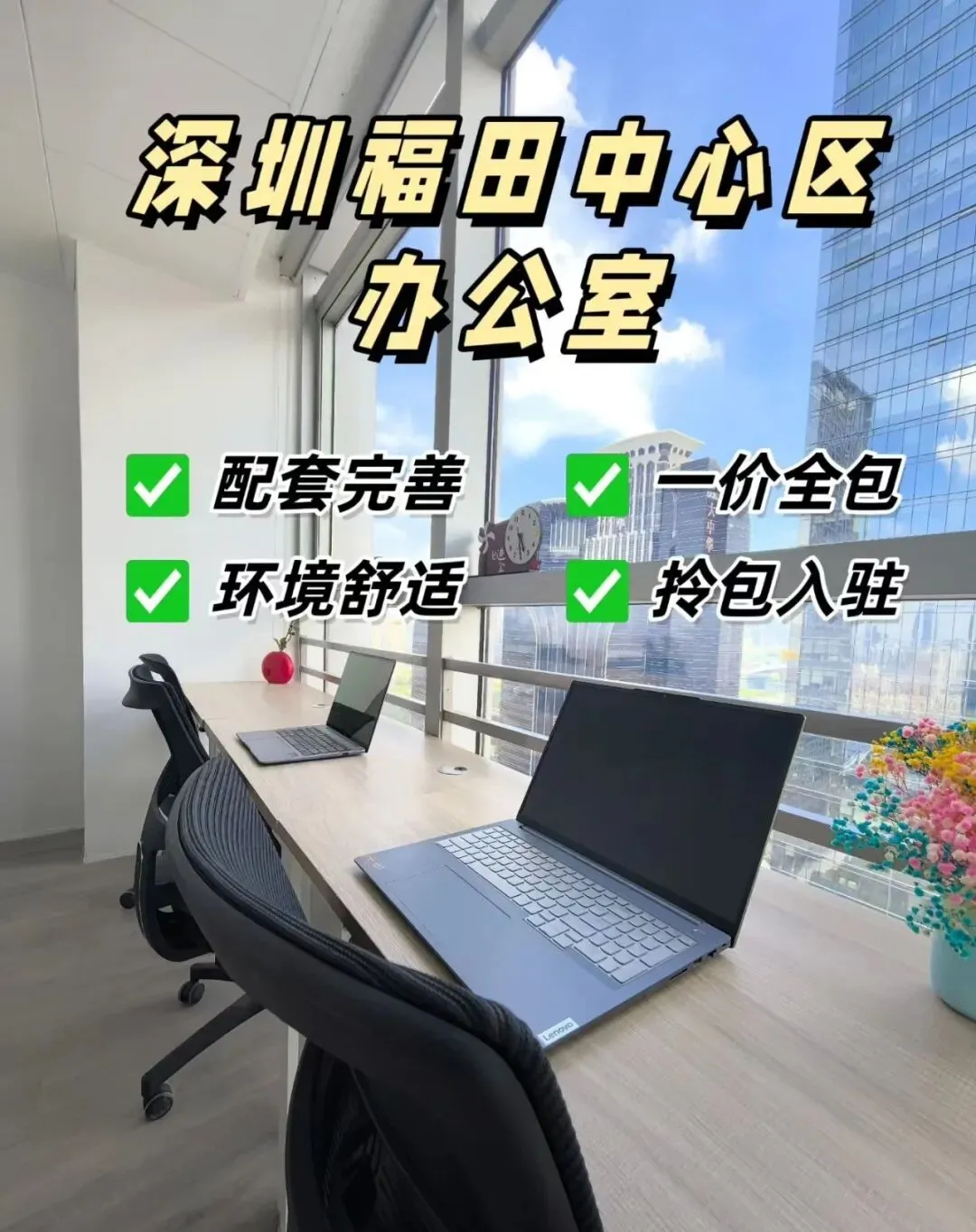 ✌️会展中心地铁口办公室,1-10人间,1080元/月起;费用全包,落地窗视野好,总有一款办公室是合适你的?