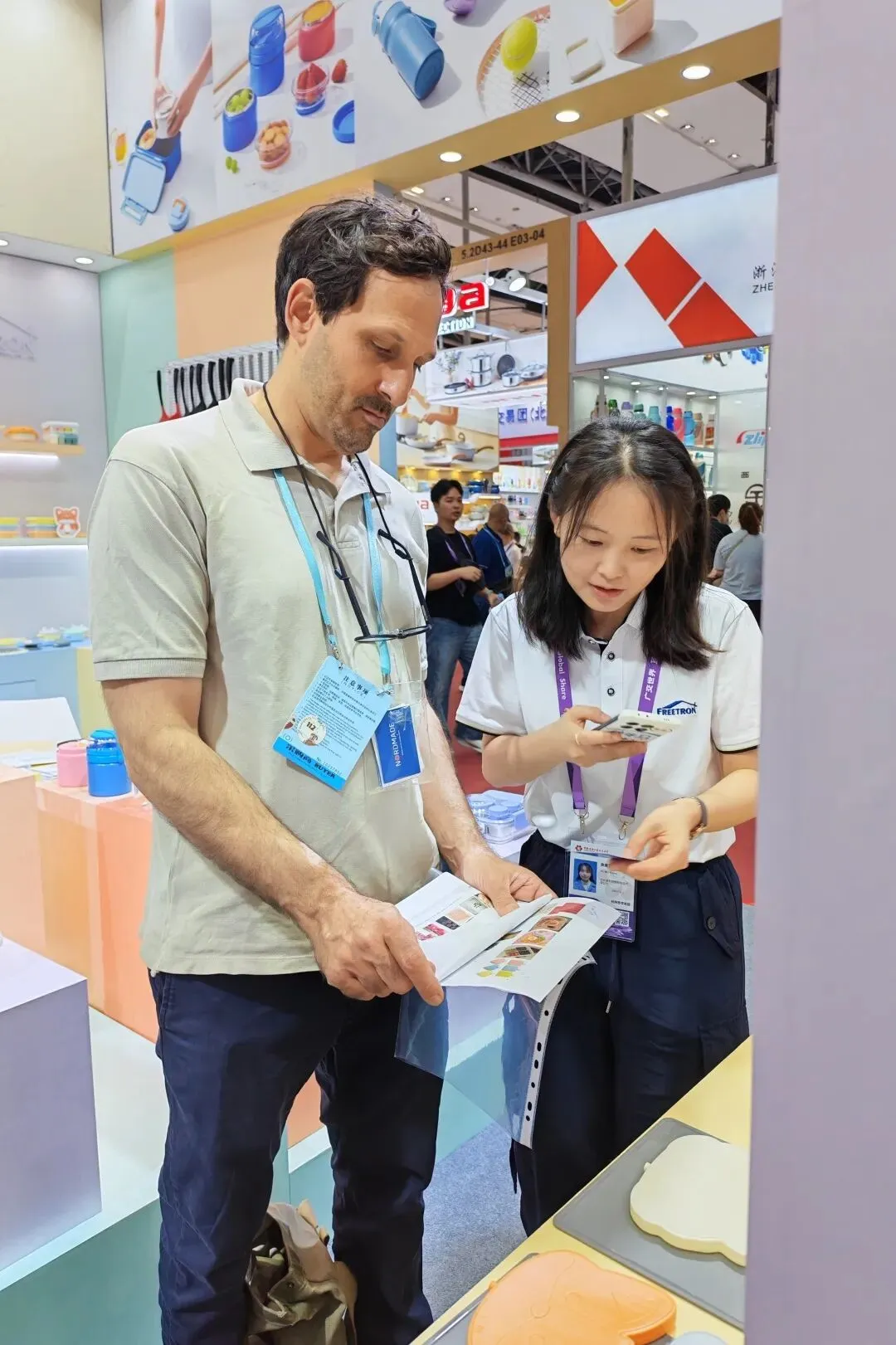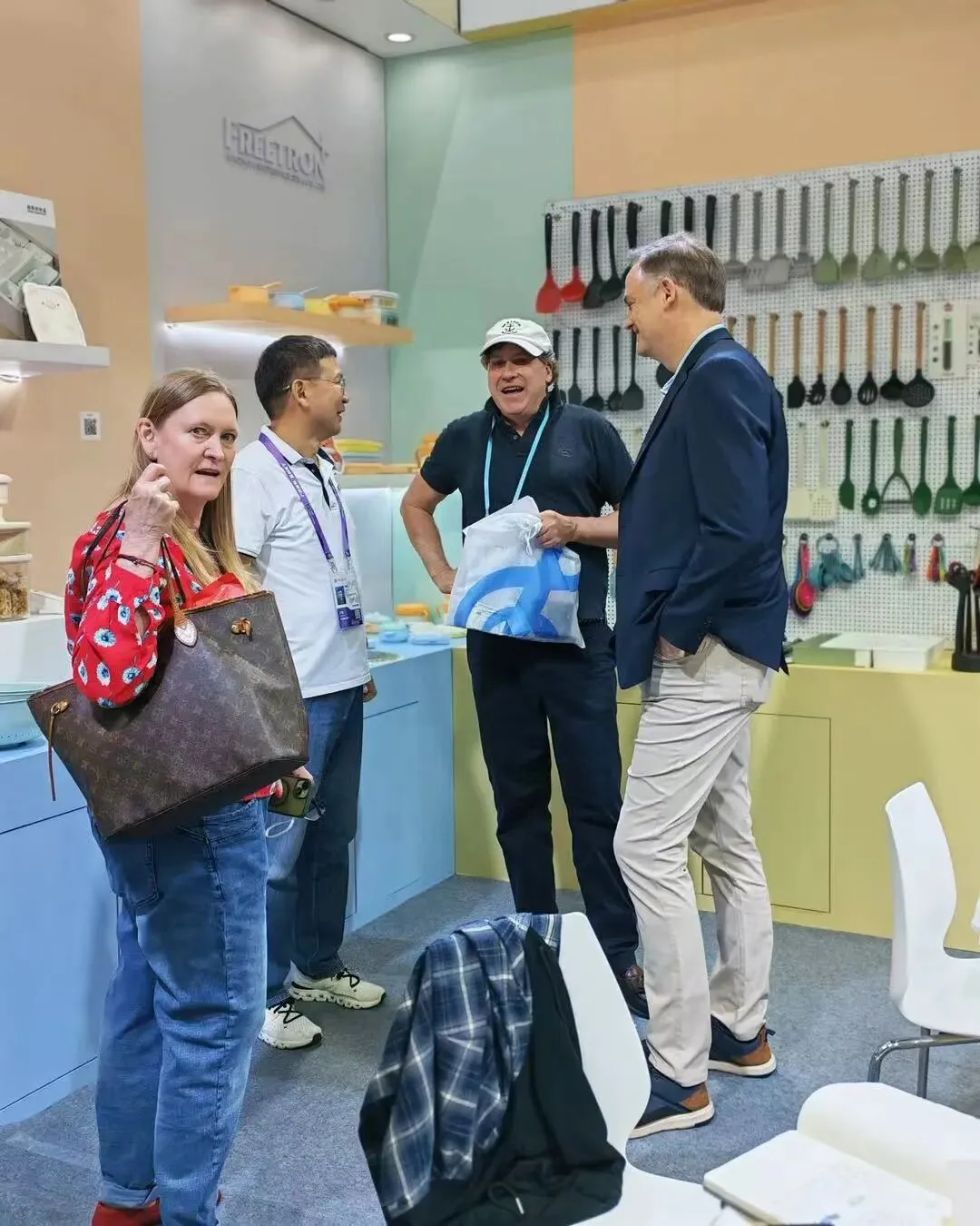 来自全球各地的外国采购商纷纷驻足莅临,围绕产品设计、品质标准、应用场景等细节深入咨询。富利登工作人员悉心回应,介绍了产品出色的实用性、创新的设计和环保理念,全方位展现富利登的综合实力。