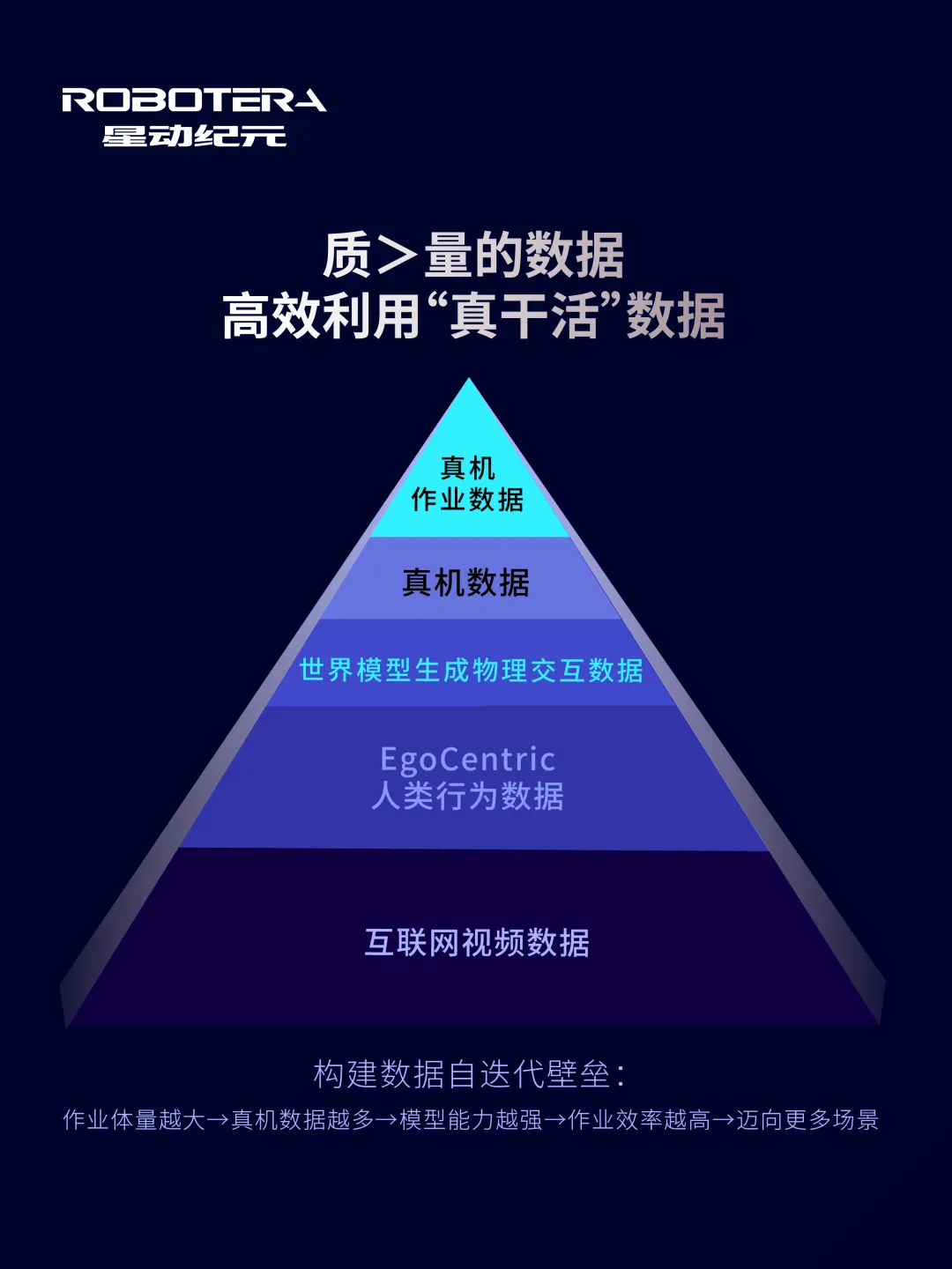 星动纪元秉持「质量>规模」的数据理念,致力于构建多元化、高质量的数据体系,为此搭建了【真机作业数据-真机数据-世界模型生成物理交互数据-EgoCentric人类行为数据-互联网视频数据】的数据闭环。