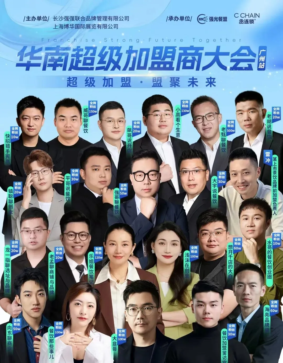 本届论坛依托于2026广州国际特许经营及连锁加盟展览会,携手国内顶尖餐饮商业流量矩阵“强光餐盟”与连锁扩张专业机构“丞连锁”,深度整合行业资源,汇聚餐饮垂直赛道最具影响力的头部IP与实战专家,精准锚定连锁加盟全周期的核心难题与发展机遇,重磅输出硬核行业干货。