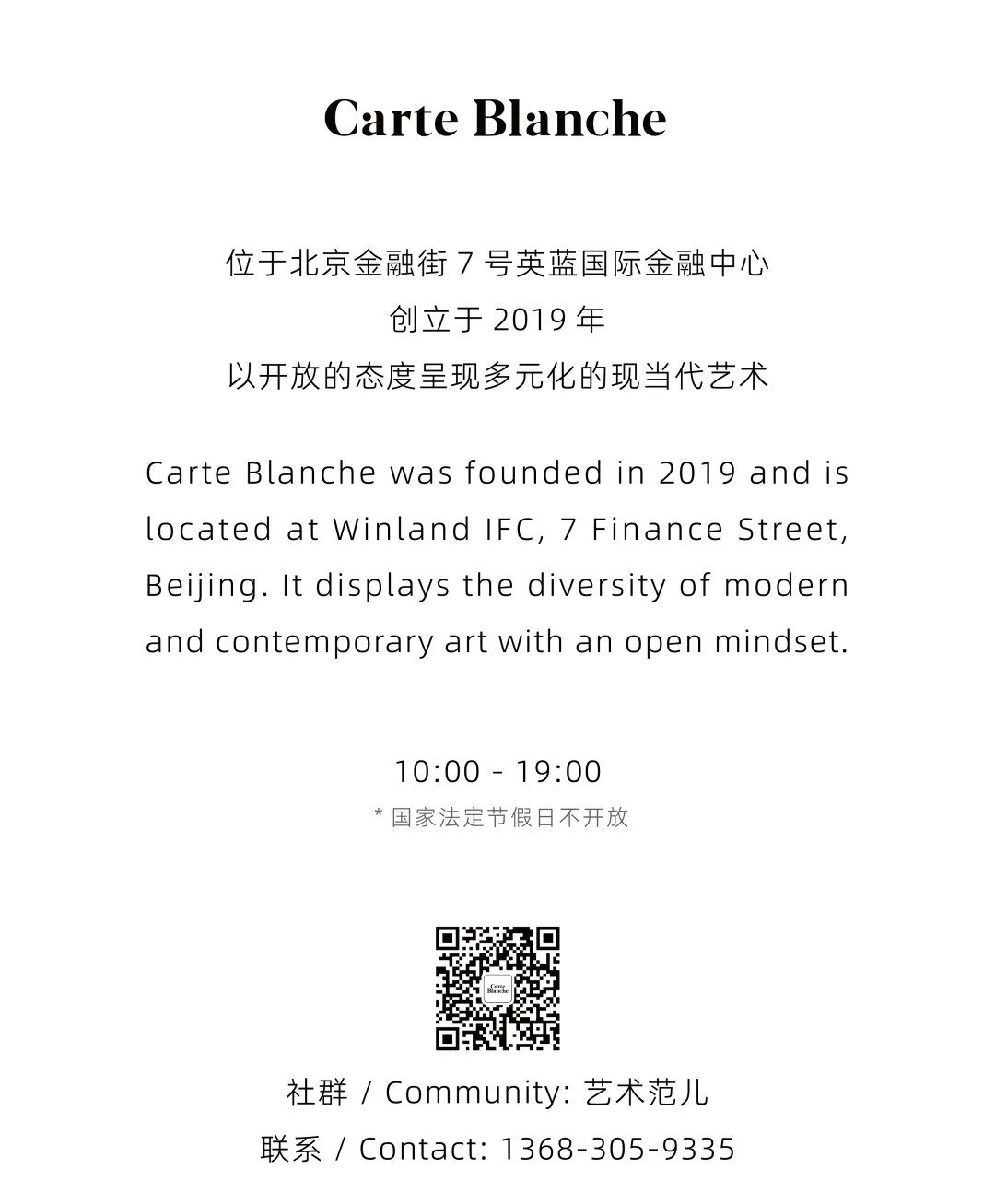 本次展览由冰岛驻华大使馆、英蓝集团与 Carte Blanche 联合主办,顾振清策展。