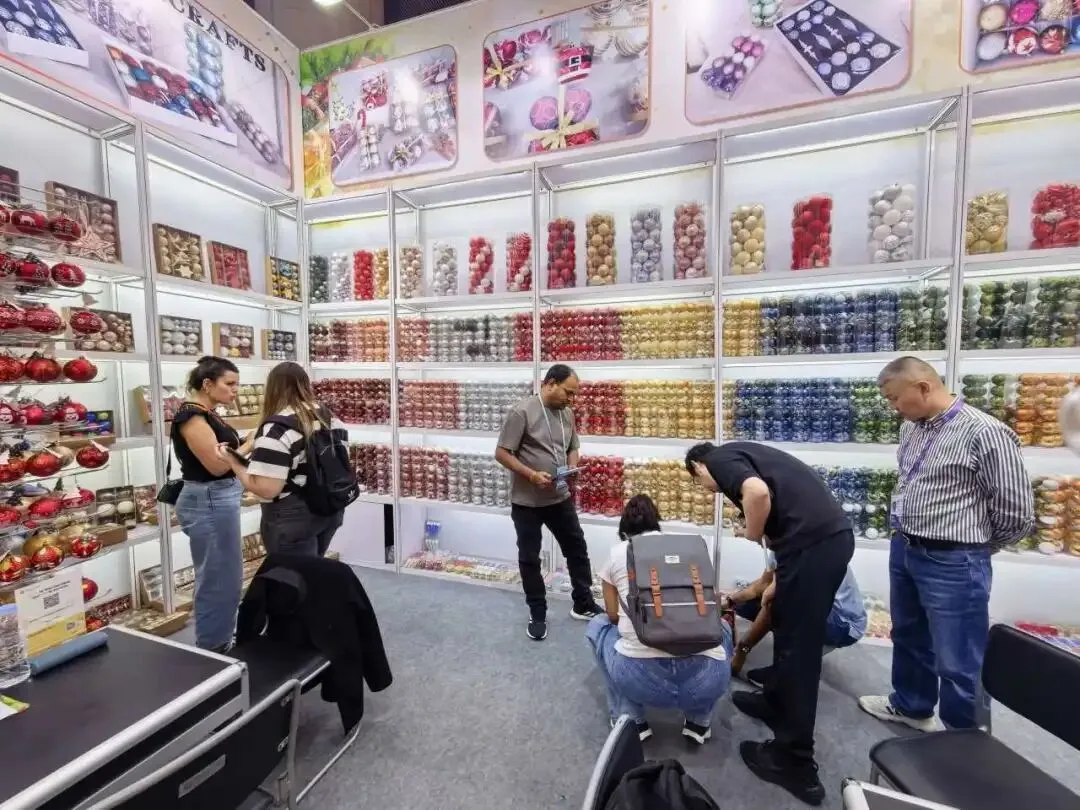 在工艺礼品展区,温州百盛工艺品有限公司的展位同样人气十足。作为华东地区最大的圣诞礼品生产企业之一,他们带来了3000多种圣诞装饰品,尤其是色彩鲜艳、设计时尚的圣诞球系列,吸引了众多海外采购商的目光。企业通过ISO9001等多项管理体系认证,年出口额超1200万美元,产品远销欧美、澳大利亚等地。据了解,温州百盛工艺品有限公司有20多年的专业塑料镀膜经验,产品设计深受客商欢迎。公司坚持以创新为本,不断更新生产工艺,为客商提供优良的品质和服务,希望能与海内外客商携手合作,互利互惠。