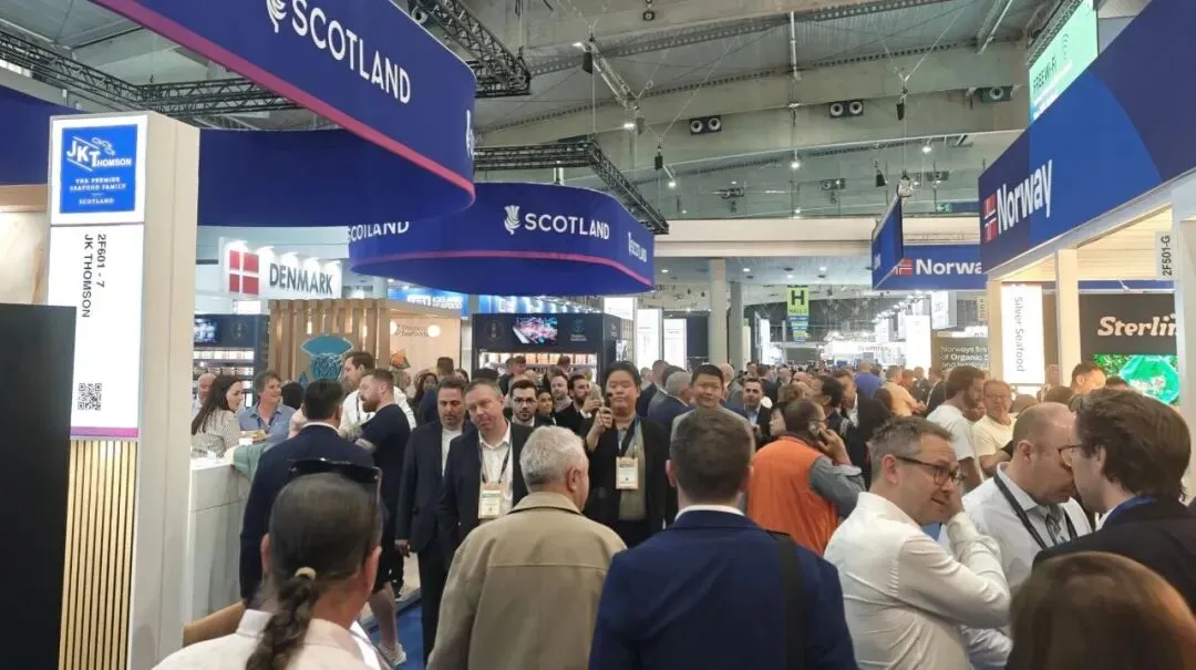 栏目|水产养殖作者|Danie团队 视觉|煮石羽客本周在海产品博览会全球展上,苏格兰馆和挪威馆之间人潮涌动,宛如一条人流。图片:FFE全球海鲜博览会的组织者今天宣布,本周在巴塞罗那举行的该活动吸引了超过 35,500 名参观者,创下了历史新高。主办方 Diversified 在一份新闻稿中表示:“今年的展会规模空前,参展人数和展览面积均创历史新高,共有来自 85 个国家的 2290 多家参展公司和 65 个国家和地区展馆,展览面积超过 52980 平方米。”“今年展会现场的活力和高度参与度清楚地表明了面对面交流对整个行业的重要性,”美国多元化集团海鲜副总裁温特·库尔蒙特表示。苏格兰海鲜展 (SEG) 第一天,苏格兰海鲜协会的厨师团队提供的菜肴包括养殖牡蛎、安康鱼配鳌虾和苏格兰红标鲑鱼咖喱。图片:FFE“来自价值链各个环节的参与者利用此次活动加强了现有关系,探索了新的商机,并掌握了塑造海鲜行业未来的趋势。”该活动在巴塞罗那会展中心格兰大道举行,据估计为该市带来了超过 1.61 亿欧元的经济效益。众多国家派出公司、国家展馆和来访部长出席了此次盛会。其中包括英国环境、食品和农村事务部(Defra)国务大臣安吉拉·伊格尔女爵士、加拿大联邦渔业部长乔安妮·汤普森和挪威渔业部长玛丽安娜·西弗森·内斯。由于即将举行苏格兰议会选举,苏格兰没有派部长出席,但苏格兰通过规模庞大的苏格兰展馆得到了充分的代表,其中包括鲑鱼生产商苏格兰海产农场和洛赫杜阿尔特的展位,以及由苏格兰海鲜协会为苏格兰生产商及其客人提供的用餐区和食物。菜单上包括苏格兰牡蛎,这是自英国脱欧以来,苏格兰牡蛎首次出口到欧洲。脱欧导致的延误和繁琐手续使得运输保质期如此短的产品风险过高。如今,延误问题已大大减少,欧盟和英国也已达成协议,取消植物检疫检测的要求。世界最大的鲑鱼生产商 Mowi 在苏格兰、爱尔兰和加拿大等地都有养殖场,该公司设立了一个大型展位;总部位于加拿大的 Cooke Aquaculture 也设立了一个大型展位,该公司在苏格兰、北美、智利和塔斯马尼亚等地养殖鲑鱼。订阅关注《深蓝牧鱼》 及时获取更多优质内容!