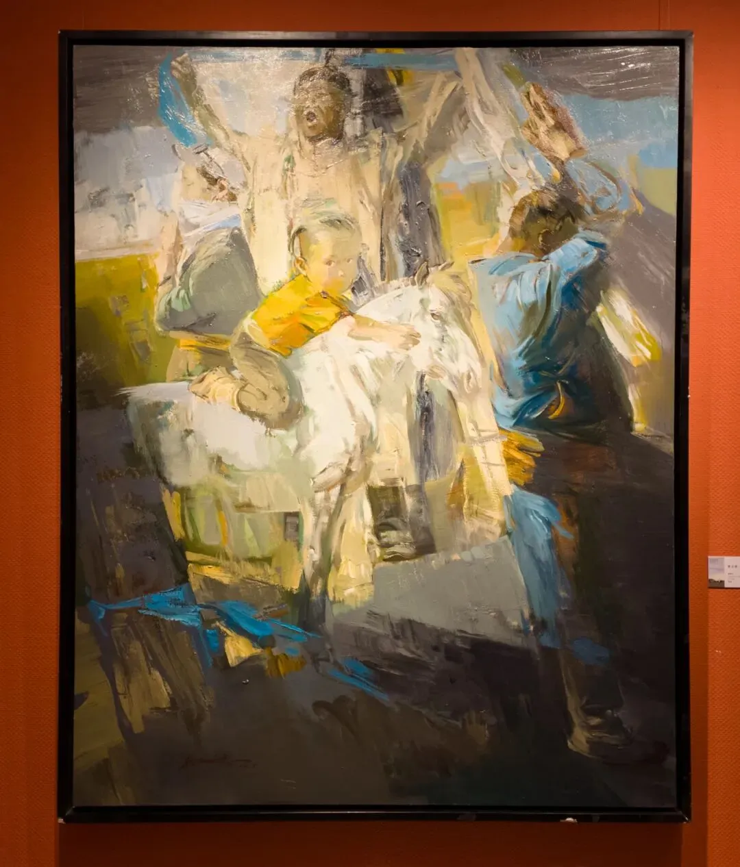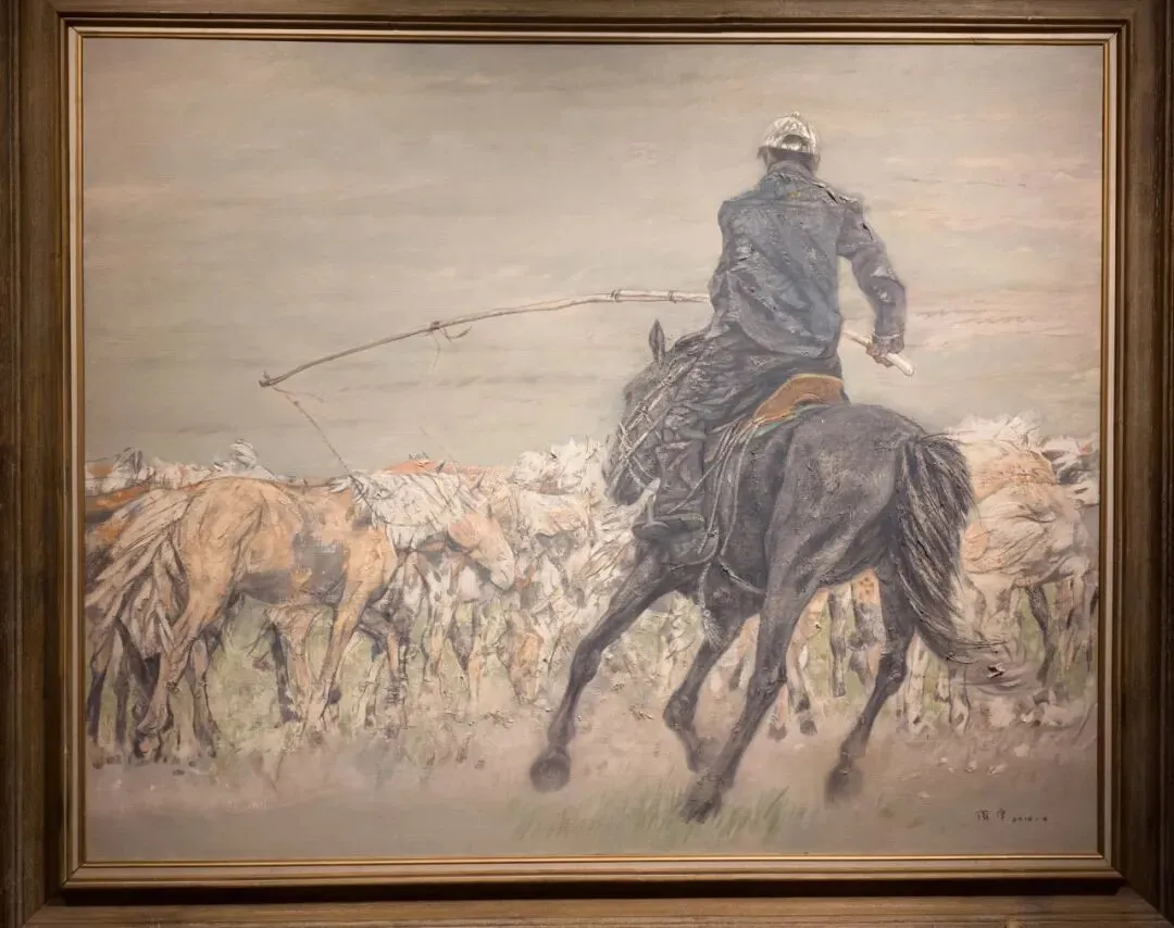 艺术,是心灵的栖居之地。当画笔触及画布,色彩流淌成诗,艺术家便在其中构筑起自己的精神家园。妥木斯先生的艺术探索,始终围绕着“归心”这一主题展开。他的作品,无论是早期的写实风格,还是后期的意象化表达,都透露出一种对精神家园的寻觅。这种寻觅,既是个人的,亦是民族的。他笔下的草原,不仅是地理意义上的内蒙古,更是文化意义上的精神原乡。