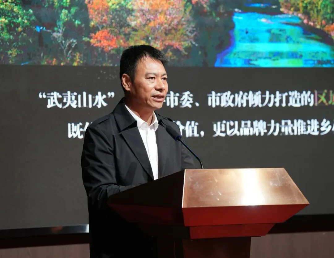 南平实业集团副总经理苏永春全面推介武夷山水品牌、闽北生态好物、文旅资源与产业优势,彰显“武夷山水”品牌魅力。