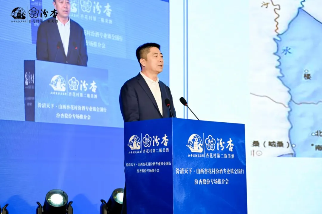 汾阳市人民政府副市长任万伟向全国客商全面介绍汾阳作为清香型白酒核心产区的独特魅力,他强调汾阳位于北纬37度黄金酿酒带,拥有酿造清香白酒的绝佳条件,被誉为白酒之源、清香祖庭。他援引2025年汾阳白酒产量超30万千升、营收突破400亿元等数据,宣告“大清香时代”正阔步前行。而汾杏作为“一汾三金六星”中的骨干企业,是汾阳产区奋进发展的重要支柱。