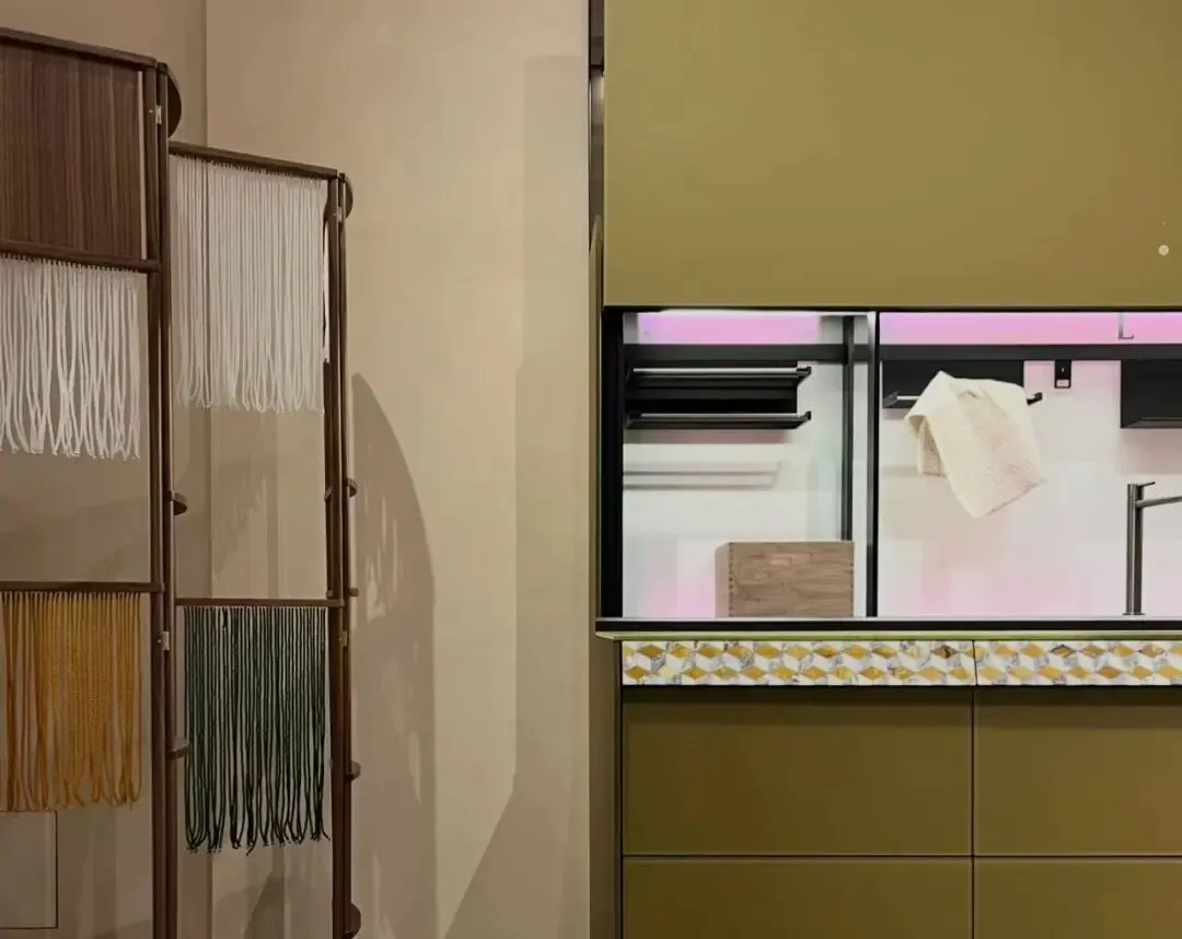 极简一体化、门墙柜隐形结构、复合材质应用成为主流;厨房空间迈向智能集成与无边界融合;卫浴空间向水疗化、场景化升级;以 Salice 为代表的意大利精工五金,展示精密结构、静音阻尼与隐形配套技术,为高端定制提供关键工艺支撑。