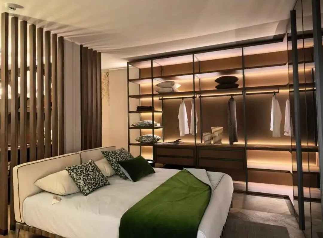 主家具展区以意式极简、现代轻奢、高端整装为核心主线,门墙柜一体化、悬浮结构、隐形收纳、无边界收口工艺成为主流设计表达。